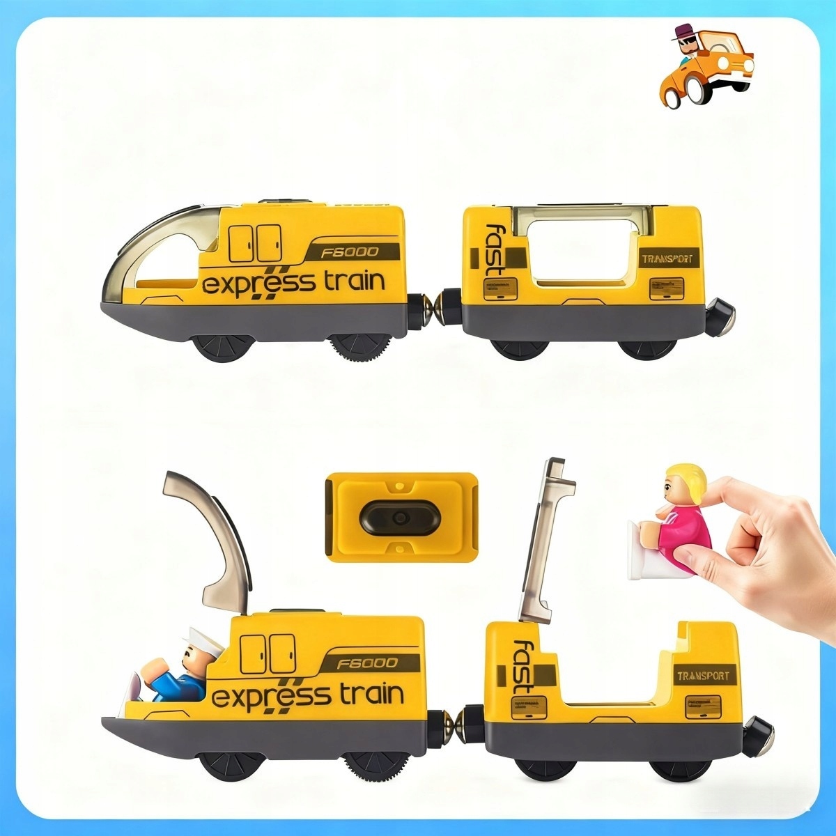 Цей набір включає 1 локомотив (зарядка USB-C), 1 магнітний вагон, 1 пульт дистанційного керування (батарея не входить), 1 кабель для заряджання USB-C та 1 посібник користувача. Пульт дистанційного керування має багатофункціональну кнопку для ввімкнення/вимкнення, руху вперед, назад і зупинки. Він також має 4 реалістичні звукові ефекти для водіння, зупинки та проходження через тунелі, мости чи пішохідні переходи, додаючи задоволення від їзди на цих мініатюрних поїздах.