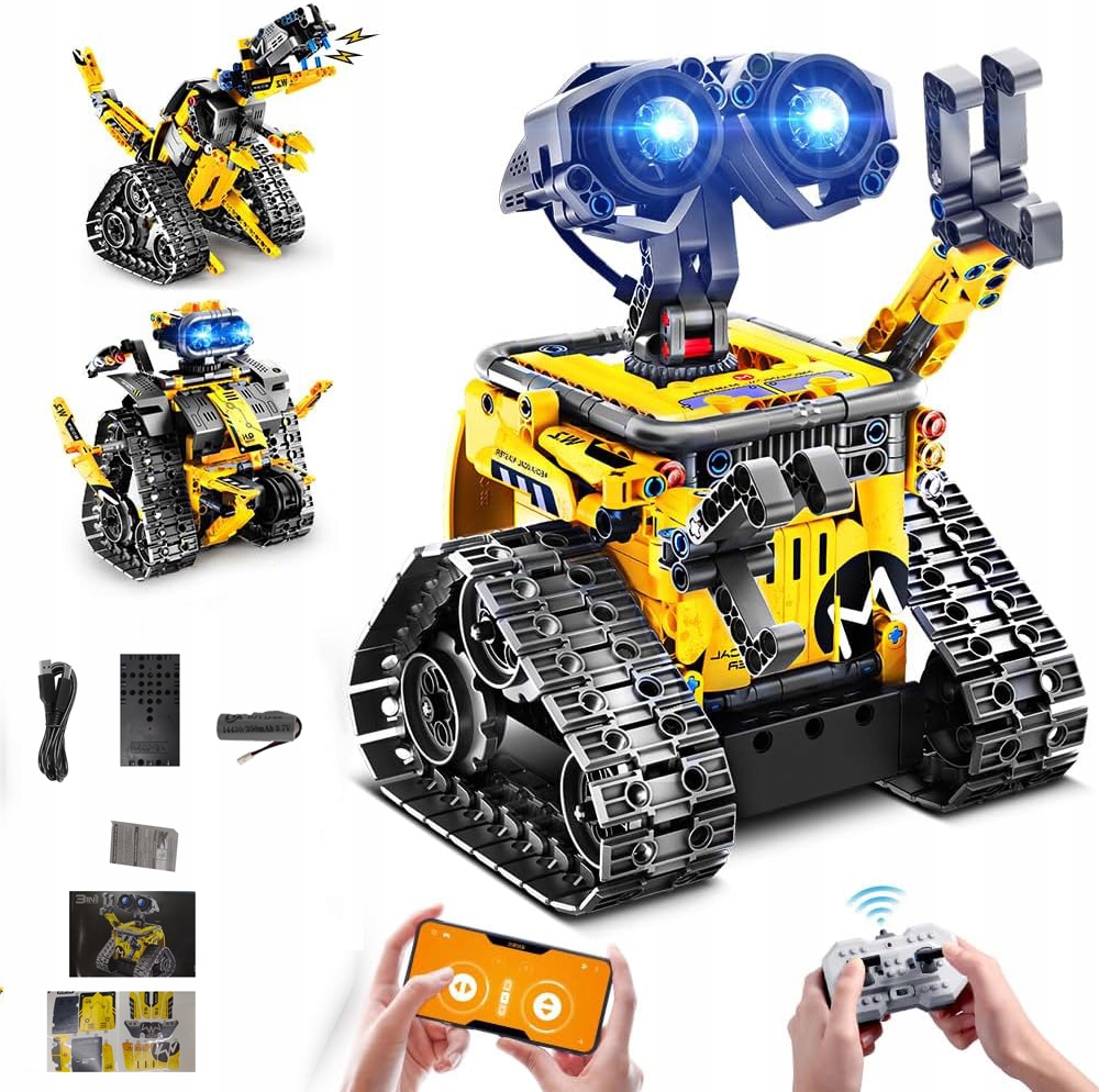 -3-в-1 будівельна іграшка дозволяє дітям насолоджуватися 3 різними враженнями від будівництва та розвагами, складаючи стінові роботи, інженерні роботи або класичний динозавр, або дозволити вашій уяві та створити щось нове. Його голова може обертати 360 °, а передню кришку можна відкрити. Великі гусениці та передні та задні валики гарантують, що робот може швидко рухатися, навіть коли він нахилений вперед або назад.