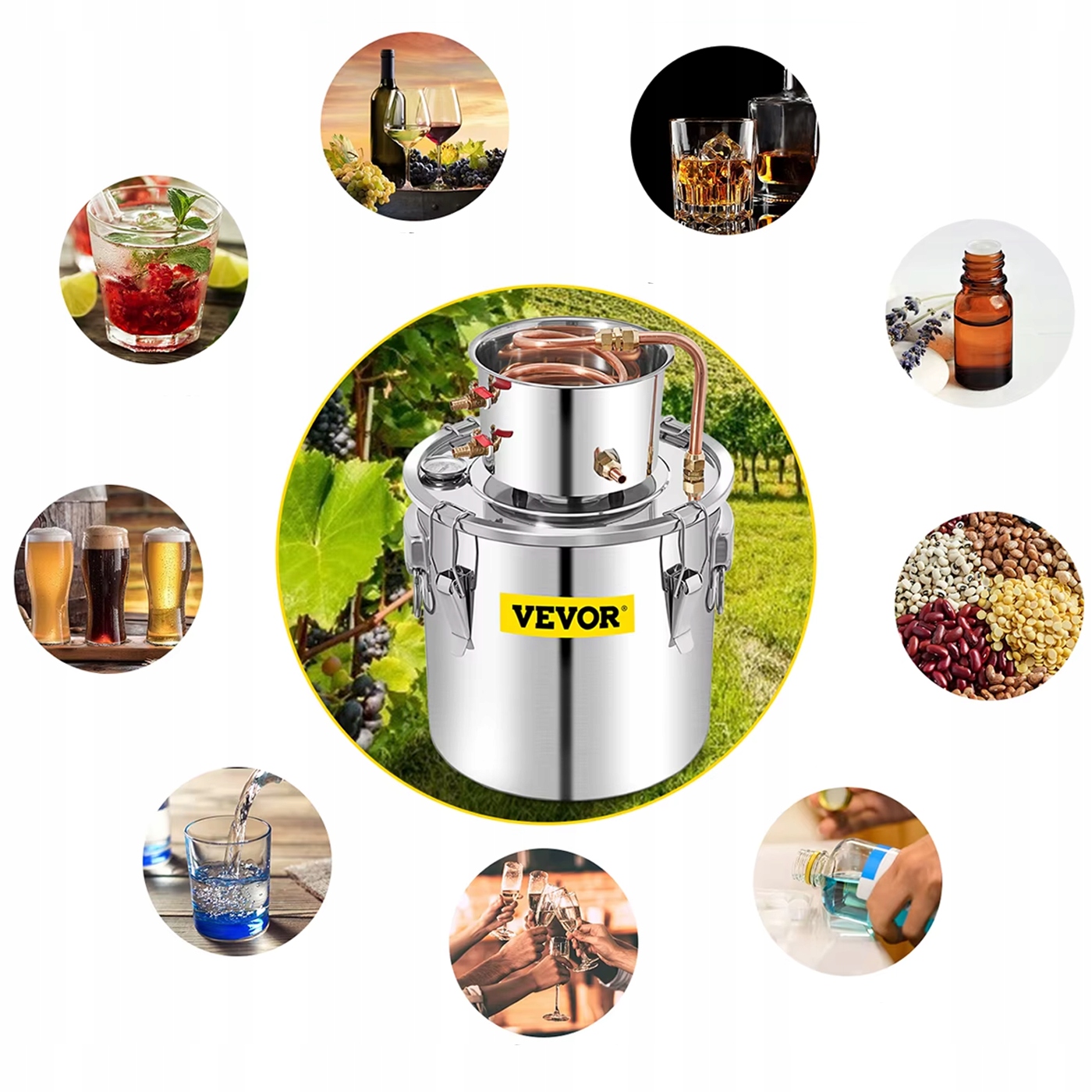 - Багатофункціональне застосування: Ідеально підходить для виробництва ефірних олій, рослинних гідролатів, дистильованої води та домашніх алкогольних напоїв, таких як бренді чи віскі.
