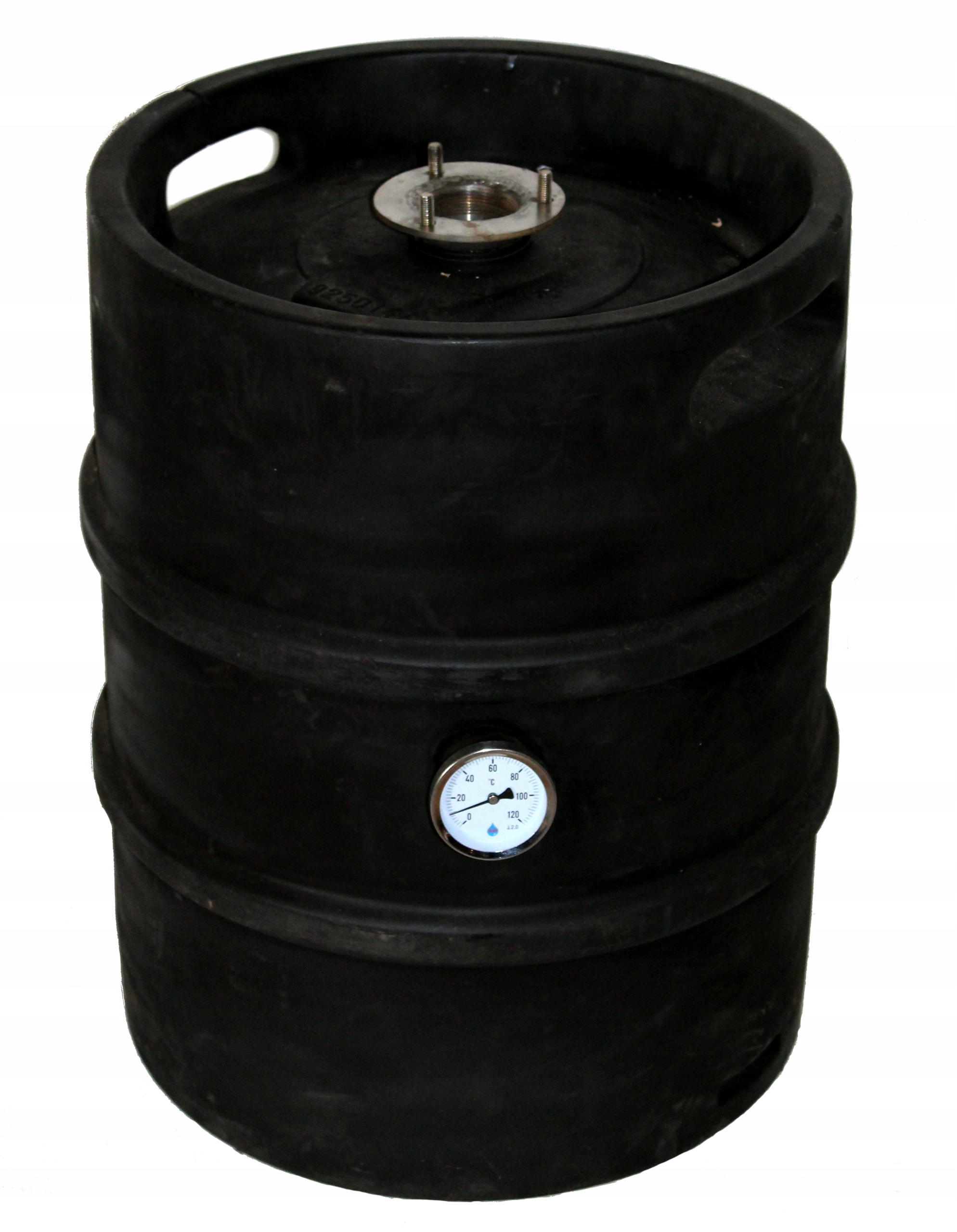 1. Бочка ємністю 20, 30 або 50 л з широким носиком 5 см, виготовлена з нержавіючої сталі з покриттям, що зменшує втрати тепла при дистиляції. Кег має приварену втулку 5/4" для електронагрівача, втулку 3/4" для зливного клапана, втулку 1/2" для термометра та отвір для зонда.