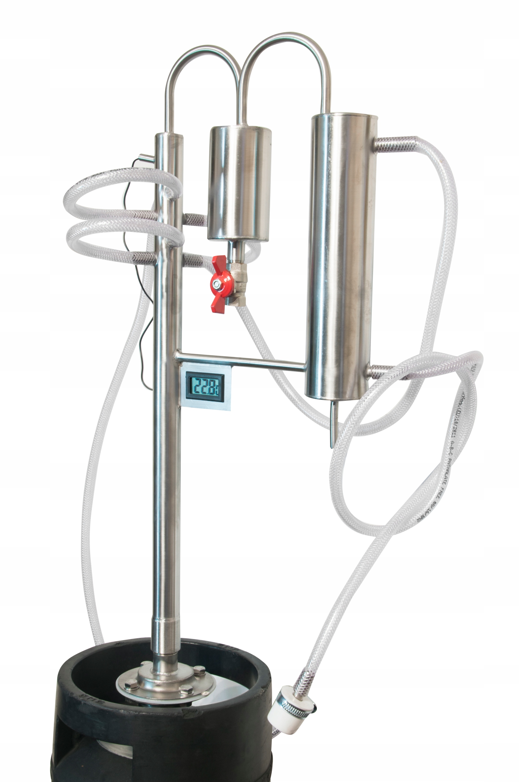 1. Електронний термометріз зондом, який вставляється в капіляр у верхній частині колонки. Завдяки використанню термометра ми повністю контролюємо температуру парів, що надходять в охолоджувач, що полегшує регулювання відсотка потужності кінцевого продукту.