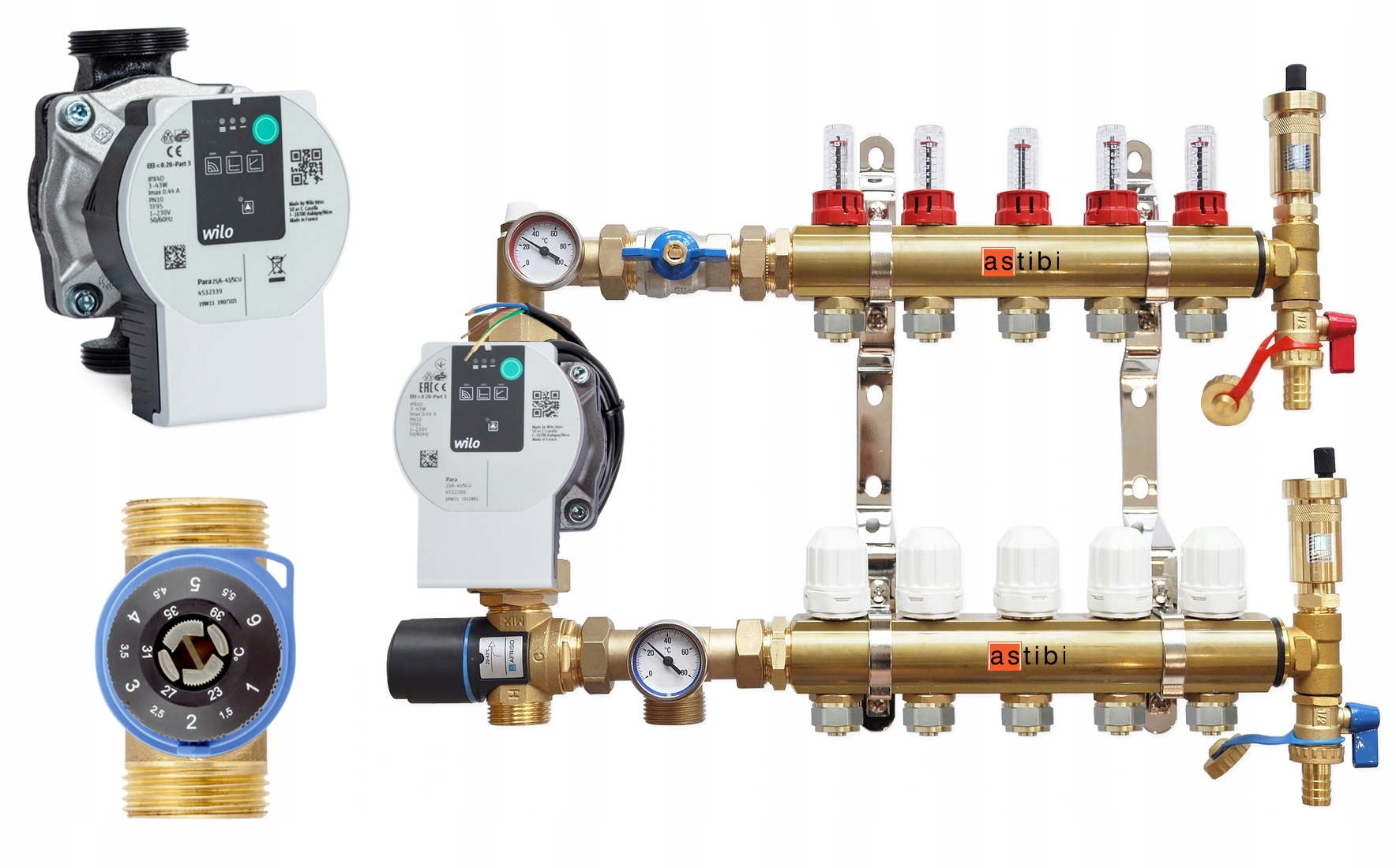 Розповсюджувач 10 ланцюгів для нагрівання підлоги з набором змішування з енергією -насосом Wilo 2>