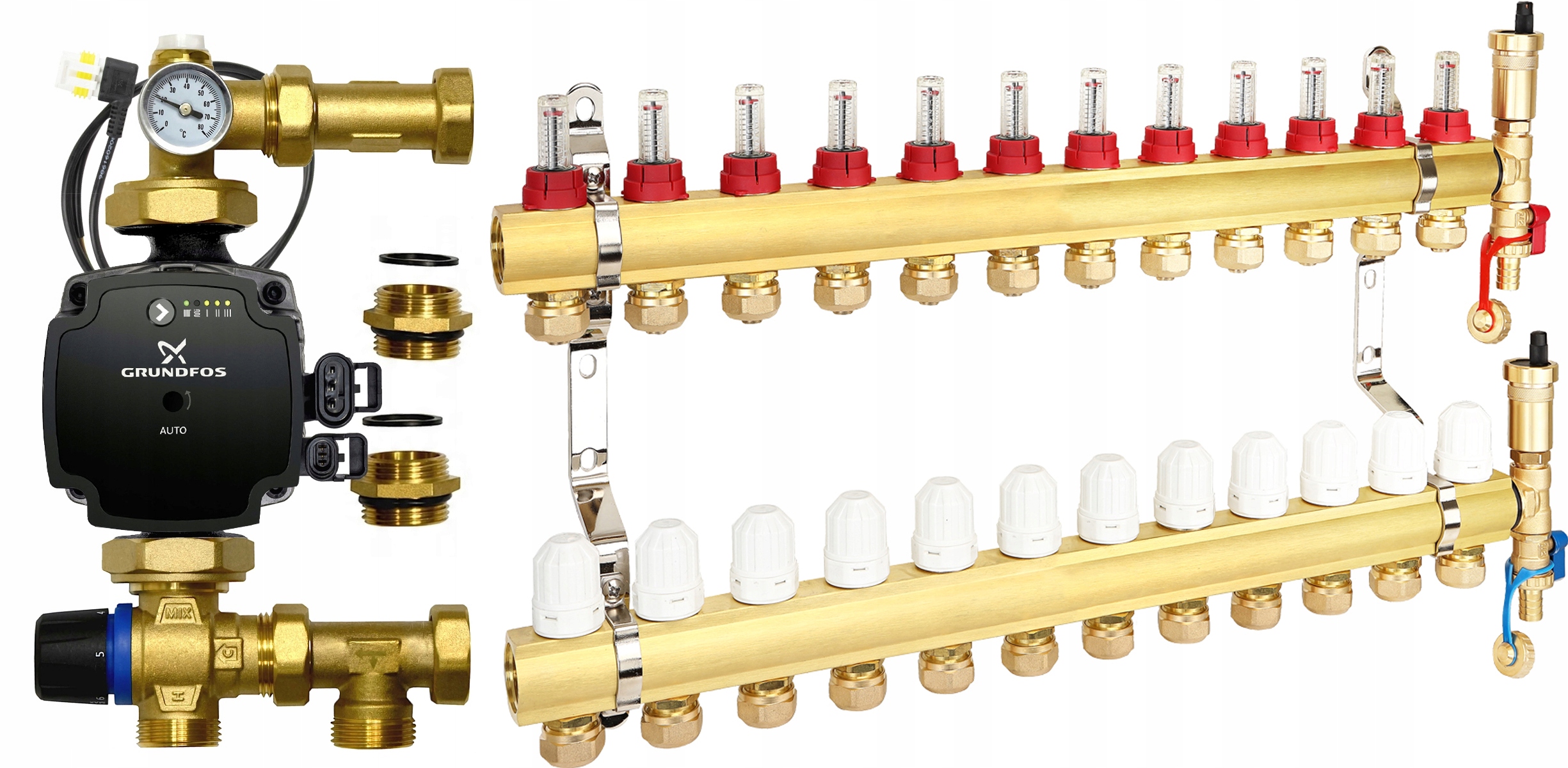 Набір: дистриб'ютор 12 ланцюгів + група змішування IBO + Grundfos UPM3S Auto 25-130