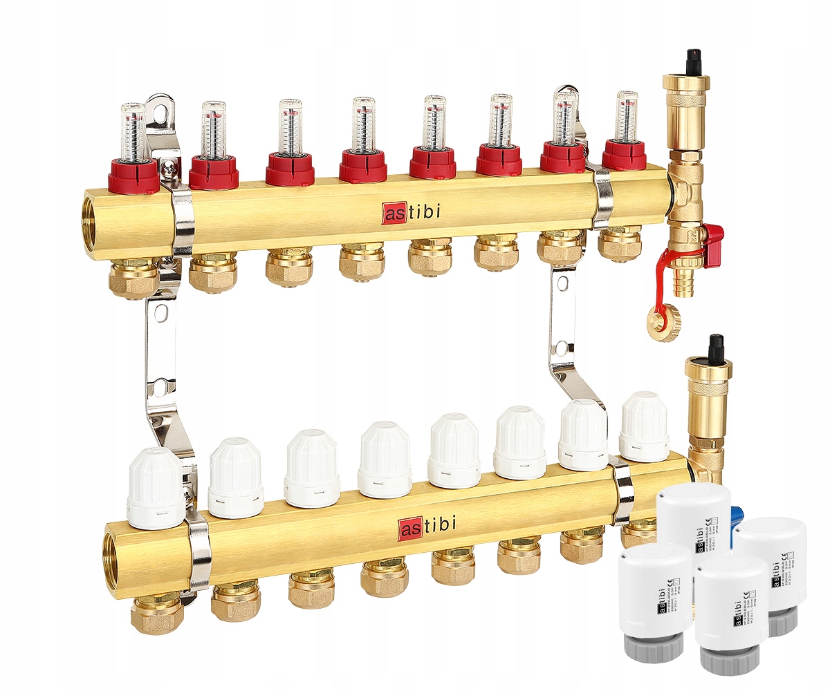 Розповсюджувач 8 ланцюгів для нагрівання підлоги з термоелектричними циліндрами Astibi