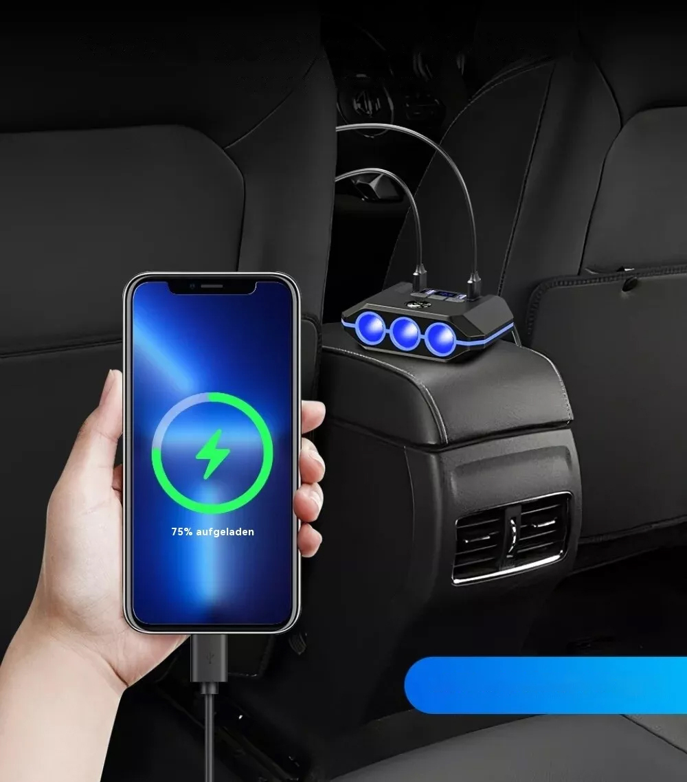 1. Адаптер для 7 -х на 1 легший, легший зарядний пристрій автомобіля, оснащений 4 портами зарядки USB та 3 більш легкими розетками з загальною потужністю 120 століття
