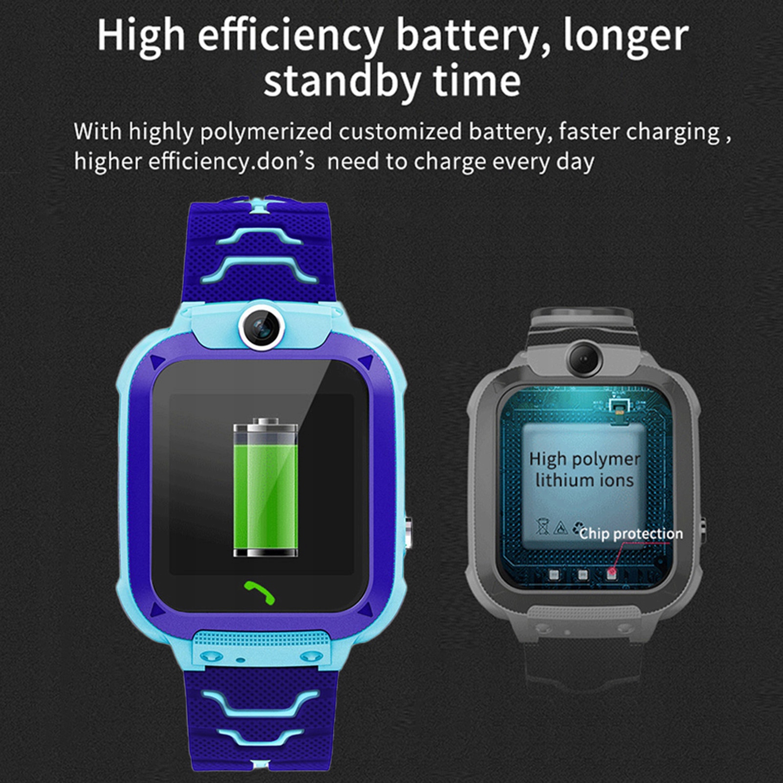 Високопродуктивна батарея, довший час у режимі очікування. Завдяки спеціальній батареї з високою полімеризацією зарядка батареї відбувається швидше, ефективність вища, а час споживання енергії довший, усуваючи клопоти щоденного заряджання.