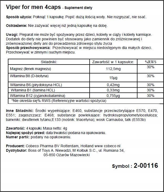 Покупая «Viper 4 Capson Диетическая добавка.» данный товар из каталога «Длительный секс» вы можете быть уверены, что после оформления заказа, доставки в Украину, вы получите именно то, что заказывали, в оговоренные сроки и европейского качества.
