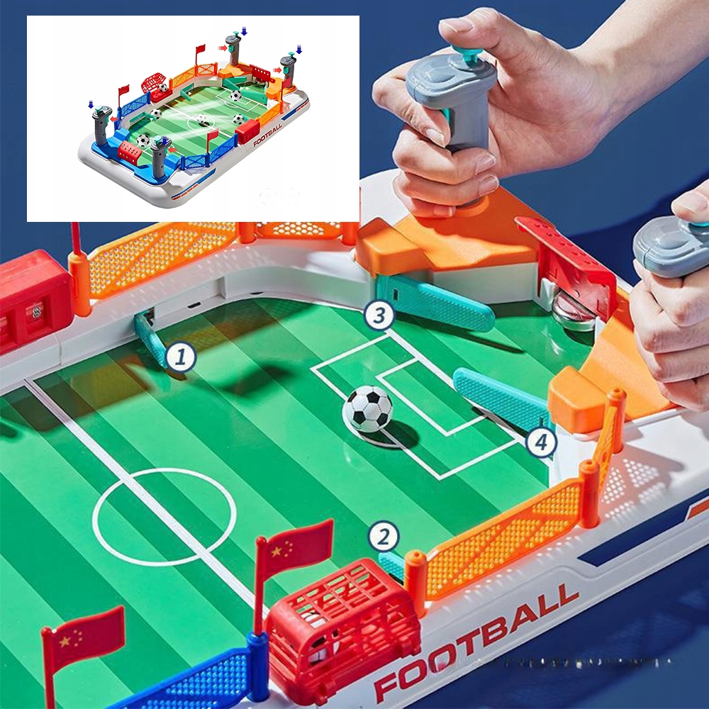 - Нахилена форма ігрового поля, дзвоник для воріт і відображення результатів відображають справжні враження від гри у футбол. Ідеально підходить для того, щоб кинути виклик друзям і родині на захоплюючу гру.