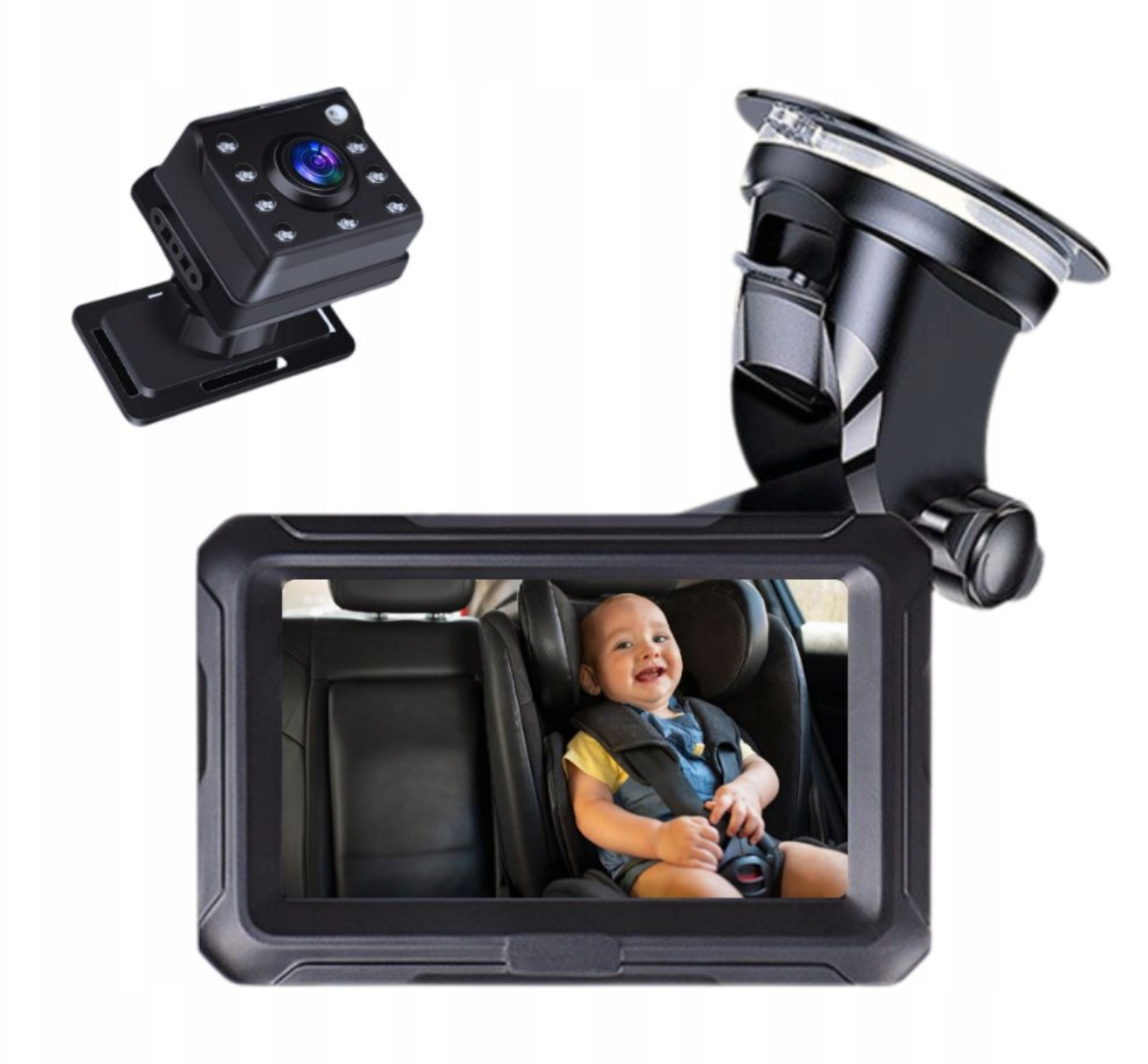 ✔️4,3 дюйма: зручно стежити за станом вашої дитини завдяки великому екрану Full HD, який забезпечує чудову видимість і не заважає під час водіння.