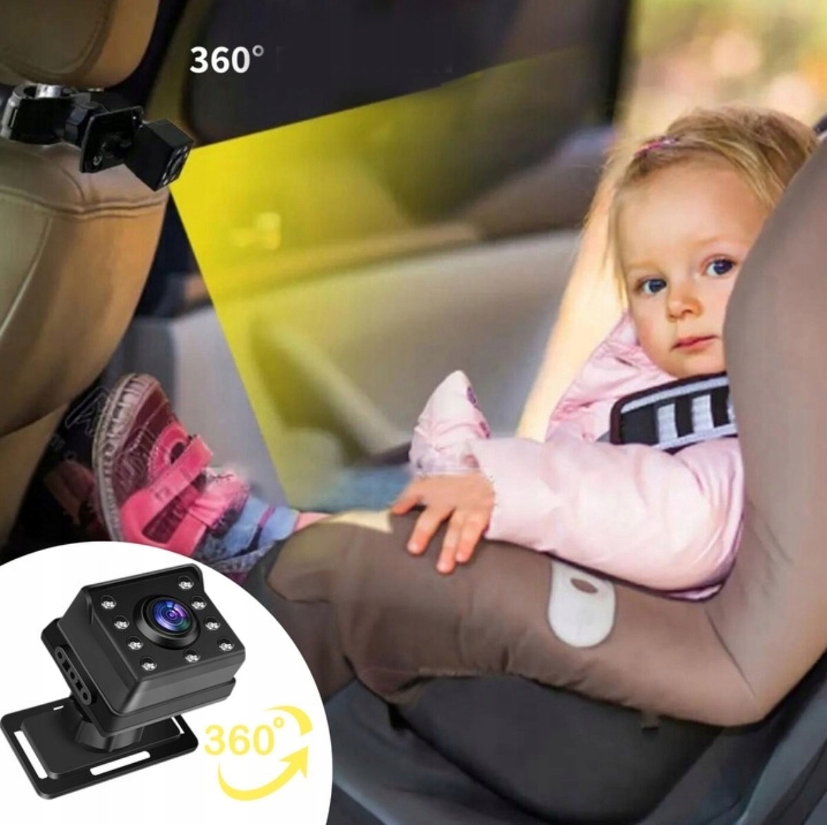 ✅Обертається на 360°, регульована камера для заднього сидіння дитини