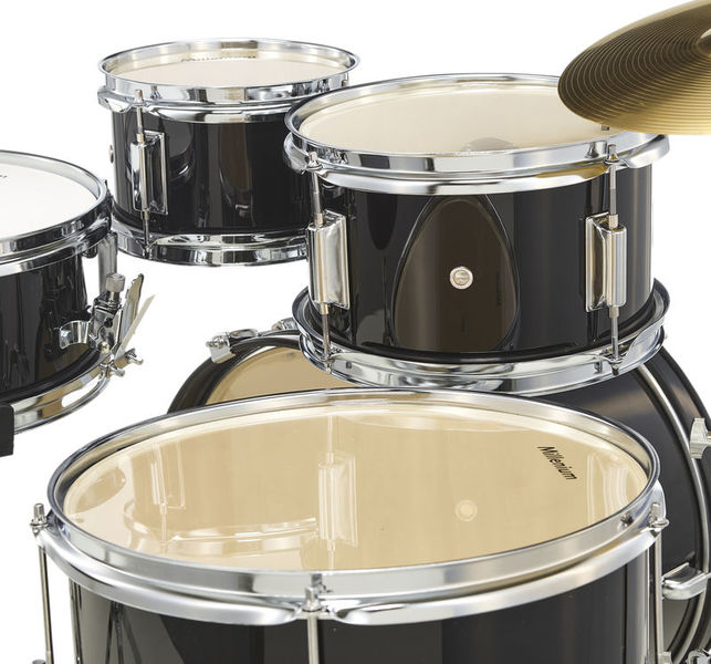 - Включає обладнання: ударний барабан, підставку для хай-хету, складну підставку для тарілок,