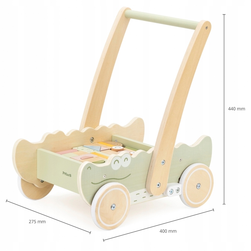 - Відкрийте для себе задоволення від своїх перших кроків із нашою чарівною іграшкою-ходунком у формі милого крокодила! Ця іграшка - справжнє джерело радості для вашого малюка та чудовий спосіб підтримати його розвиток. Стійка конструкція зі зручною ручкою гарантує безпеку під час навчання ходьби, а кумедна форма крокодила додає всієї пригоди шарму! * Особливості: - Надійне захоплення: Ергономічний дизайн забезпечує комфорт і стабільність, що полегшує вашій дитині утримання рівноваги. - Веселі блоки: всередині ви знайдете набір різнокольорових блоків різної форми, які заохочують до творчої гри та розвивають ручні навички. - Тихі, м'які колеса: іграшка може вільно переміщатися по кімнаті, а м'які колеса не пошкоджують підлогу. - Пастельний дизайн: ніжні кольори та милий зовнішній вигляд крокодила зроблять його улюбленою іграшкою вашої дитини! Ця іграшка - справжня шахта веселощів і розвитку! Кубики навчають кольорам і формам, а сама іграшка допомагає дитині набути впевненості в собі під час навчання ходьби. А коли вони втомляться від прогулянок, його можна використовувати як зручний контейнер для іграшок, завжди готовий до дії! Виготовлений з натуральної деревини, не містить токсичних речовин, він відповідає найвищим стандартам безпеки та довговічності.