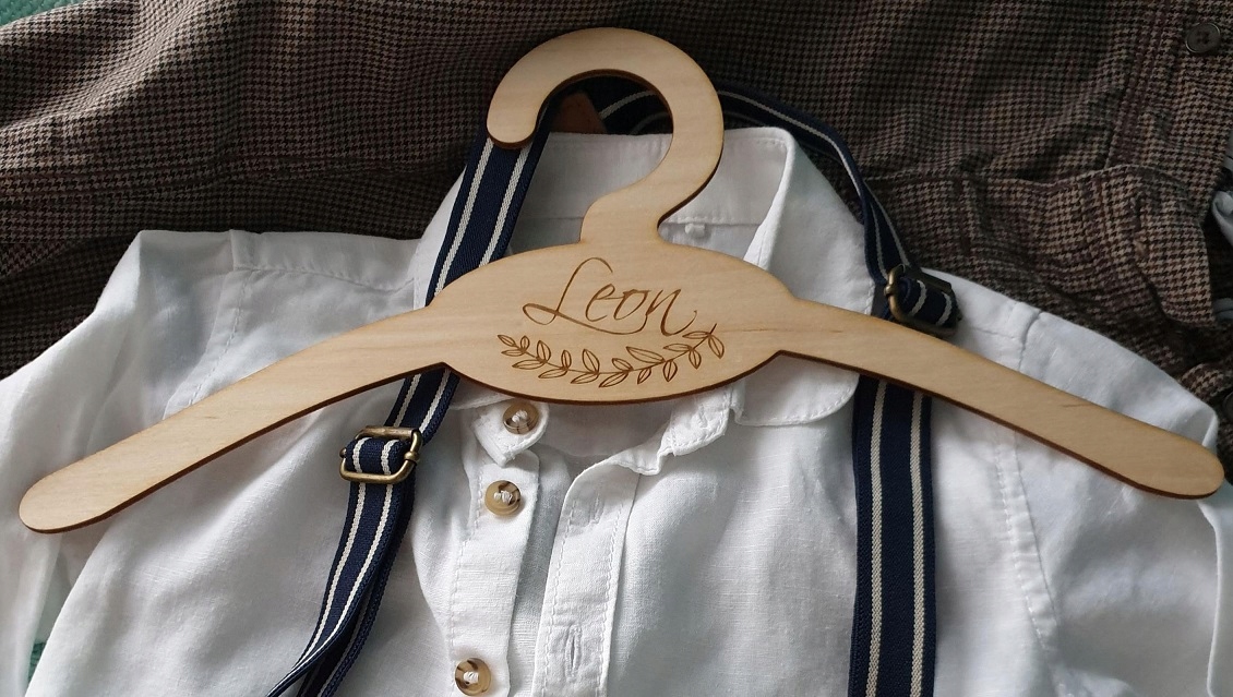 Дитяча дерев’яна вішалка гравірована назва ретро