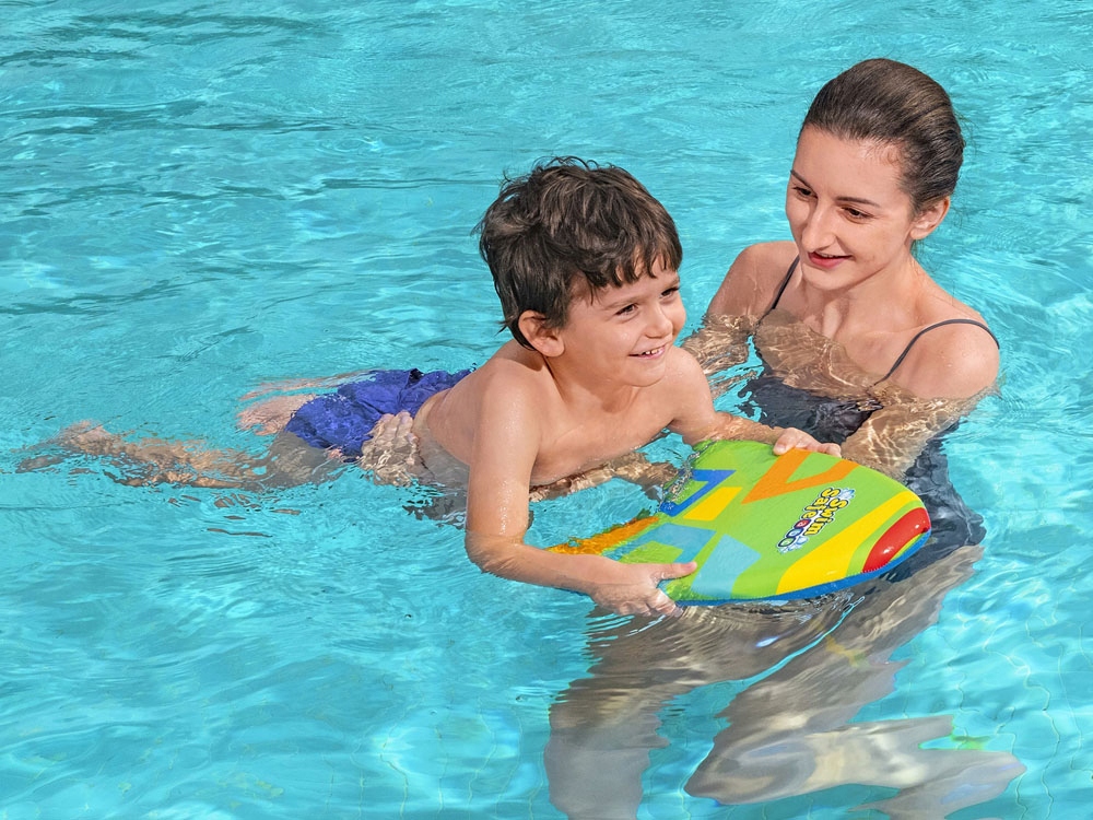 - Пінопластова дошка для навчання плаванню для дітей від Bestway точно стане в нагоді під час канікул. Продукт створений для найменших початківців любителів води. Ідеально підходить для дітей, які вміють плавати, але потребують допомоги та підтримки. Завдяки пінопласту ваша дитина почуватиметься впевнено під час перших уроків плавання, відпрацьовуватиме техніку та розвиватиме навички плавання. Просто лягайте на нього, і ви можете тренуватися рухати ногами. Дошка має розміри 42x32x35 см і має ергономічну форму. Він виготовлений з міцної піни з чудовою плавучістю. Крім того, він покритий тканиною з кольоровою графікою, щоб забезпечити зручне захоплення та запобігти вислизанню з рук. Підходить для дітей віком від 3 до 6 років. Виробником дошки є Bestway, лідер у виробництві високоякісної фурнітури та ін. пляж, вода для купання.