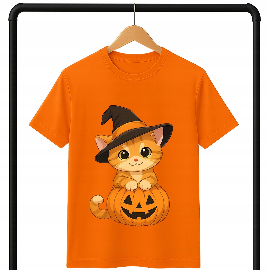 ДИТЯЧА ФУТБОЛКА ПОМАРАНЧЕВА HALLOWEEN КОТИК ГАРБУЗ РОЗМІР M см
