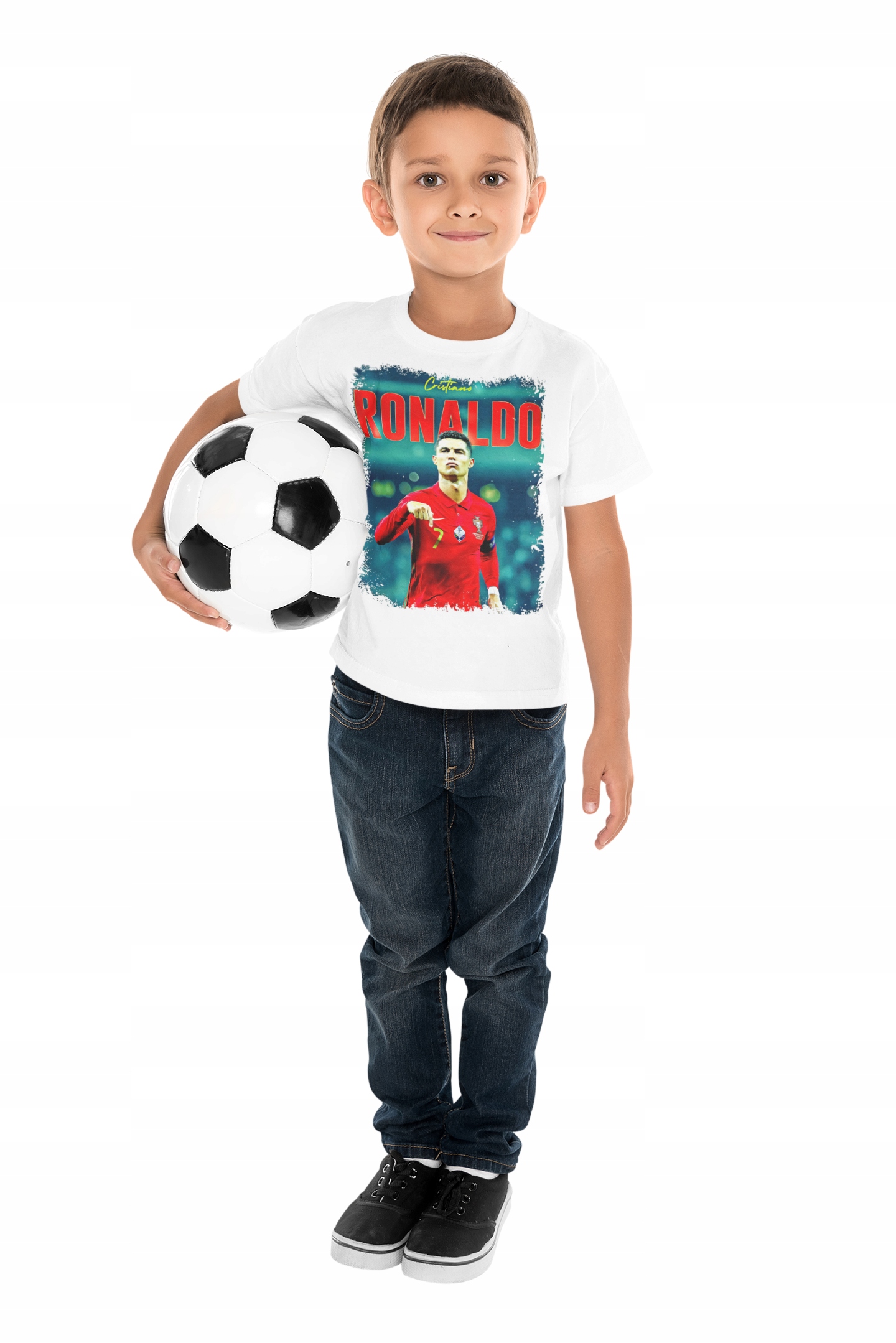 Ласкаво просимо на аукціон, де пристрасть до футболу поєднується з дизайнерським шармом , створюючи унікальну колекцію для любителів одного з найвидатніших футболістів сучасності! Наша дитяча футболка з принтом Кріштіану Роналду — це не просто одяг, це вираження захоплення світом футболу та вдячності за цього надзвичайного спортсмена.