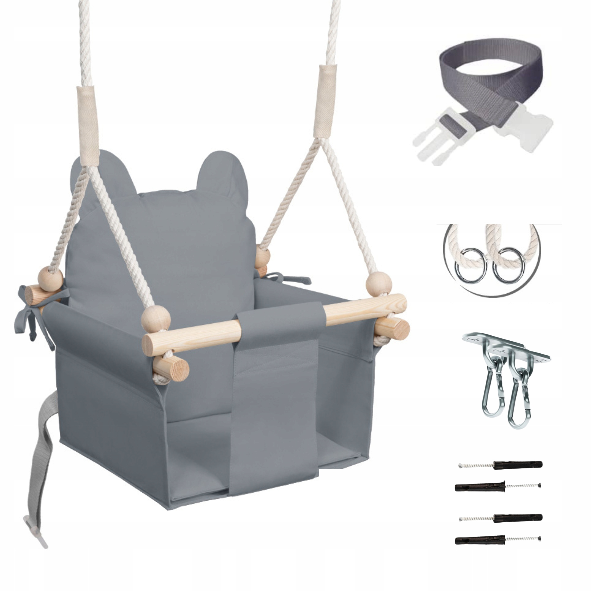Дитяча гойдалка з підтримкою ведмедя +ременя безпеки +гачок до дому, сад