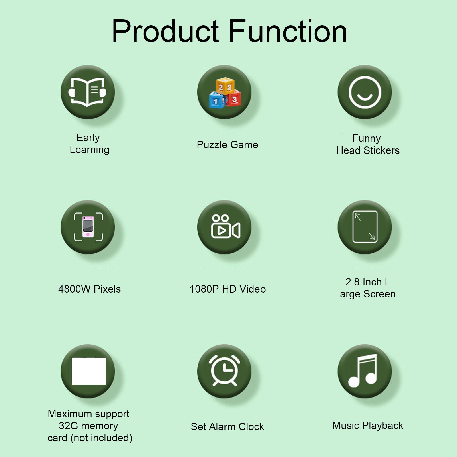 3. Багатофункціональна: ця телефонна іграшка для малюка - це більше, ніж просто камера, також музика та фільми та містить навчальні ігри. Ці функції сприяють хорошим руховим навичкам та когнітивному розвитку, гарантуючи, що діти вивчають нові концепції, при цьому насолоджуючись грою.