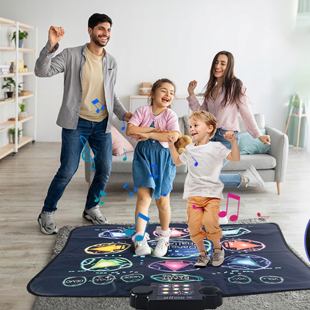 підходить як для дітей, так і для дорослих, його великий розмір дозволяє грати кільком гравцям одночасно. Окрім танцювальних ігор, килимок також можна використовувати як рішення для фізичних вправ, фітнесу та вечірок. Ідеальний подарунок для молодих людей, особливо тих, хто любить танцювати або рухатися в ритмі музики. Це порадує їх і дозволить їм використовувати цей ігровий килимок для танців, викликаючи яскраву посмішку на обличчі вашої дитини! Має 3*8=24 рівні складності. Збільште задоволення, переходячи від легкого до складного рівня.