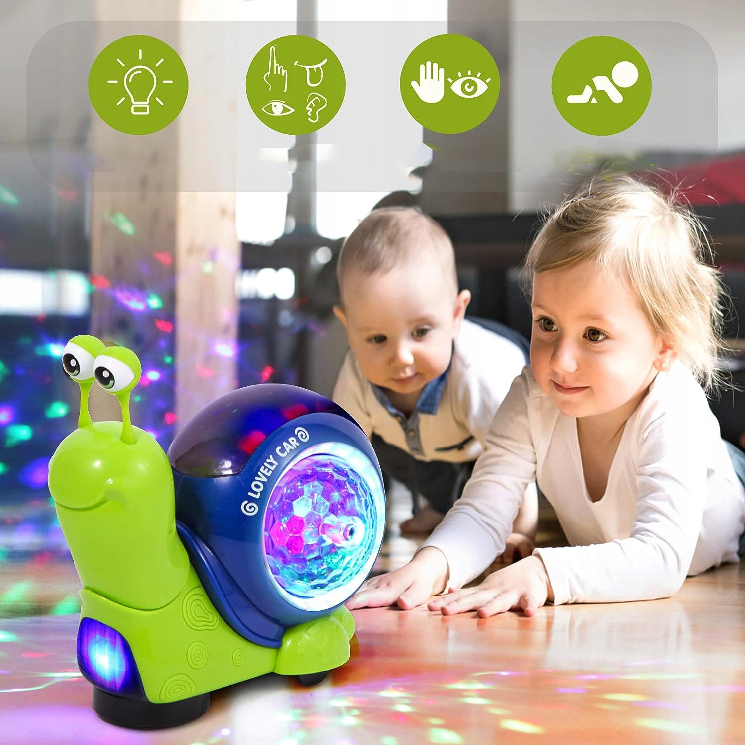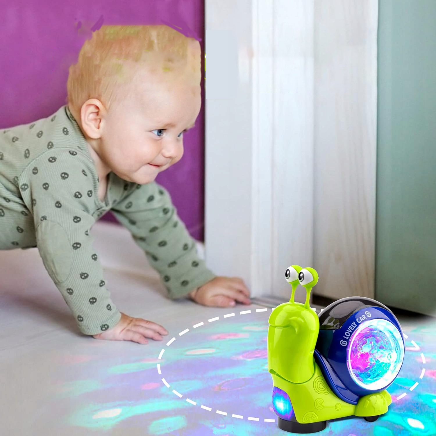 Завдяки вбудованим світлодіодним індикаторамі музичному плеєру цей танцюючий равлик буде світитися кількома різними кольорами та відтворюватиме живу музику, коли буде ввімкнено, що сприятиме сенсорному розвитку вашої дитини.