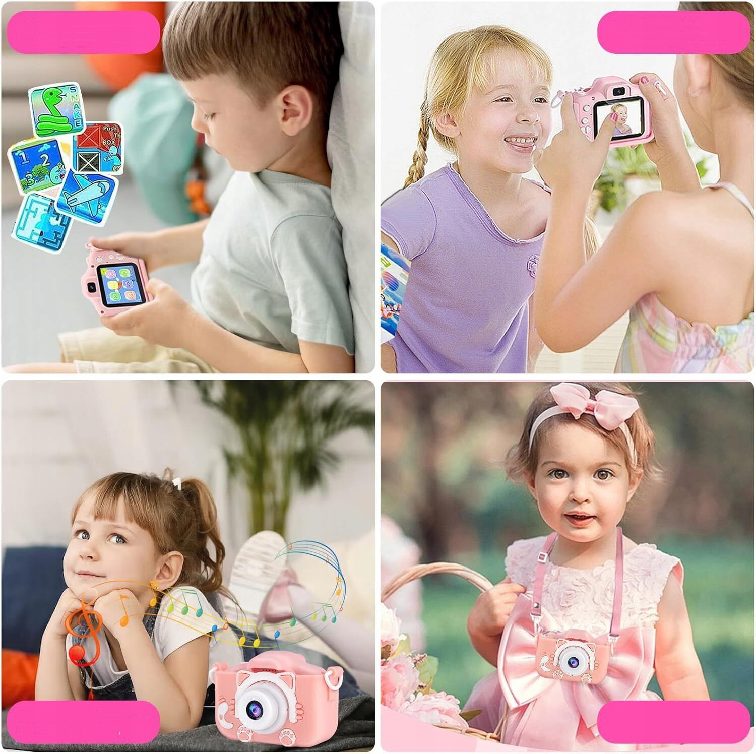🩷 Підтримує запис відеозаписів: Ця дитяча камера підтримує відеозапис, тому ви можете не лише бути прекрасними сценами На малюнках, але також постійно збережіть як динамічні моменти. Камера нашого дитячого містить 16 ГБ SD -карту. 2,0-дюймовий екран IPS з високою роздільною здатністю не вплине на зір дитини, може сфотографуватися та записувати 1080p фільми, підтримує селфі та багато мов, а також записує чудові моменти дитини. Це ідеальна міні -камера для дітей. Ігри багато інших. Камера іграшок для дітей має 28 смішних фотографій, 6 кольорових фільтрів та 5 дзеркальних ефектів, а для більшої забави ви можете слухати музику. Для дітей виготовлені з високоякісного екологічного матеріалу і оснащені високоякісним ударом силіконовим корпусом, який стійкий до падінь і не -ковзання, міцного і має дуже комфортну поверхню. Ця дитяча камера оснащена міцним ремінцем на шиї, призначеним для дітей, які відповідають маленьким рукам, і її легко переносити. У них є побудований акумулятор 450 мАг, який завантажується через USB -розетку і підтримує автоматичне вимикання протягом 1 хвилини, продовжуючи термін служби акумулятора. Завдяки дворічній зарядці камера можна використовувати протягом тривалого часу, що забезпечує дітям веселіше. З мультфільмом кота та чудовими додатковими функціями для запису або реєстрації найкращих моментів з дітьми, чарівного та елегантного зовнішнього вигляду та багатьох корисних функцій, необхідних для хлопчиків та дівчат від 3 до 12 років, ідеального дня народження, Різдва , Різдвяний подарунок, який надихає їх на відкриття та записування хороших речей.