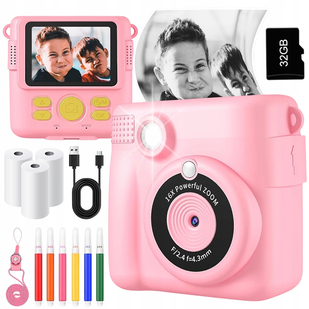 🎯🎯 Дитяча камера з термопринтером - рожева | Екран IPS 2,4 дюйма | Ідеально підходить для подарунка