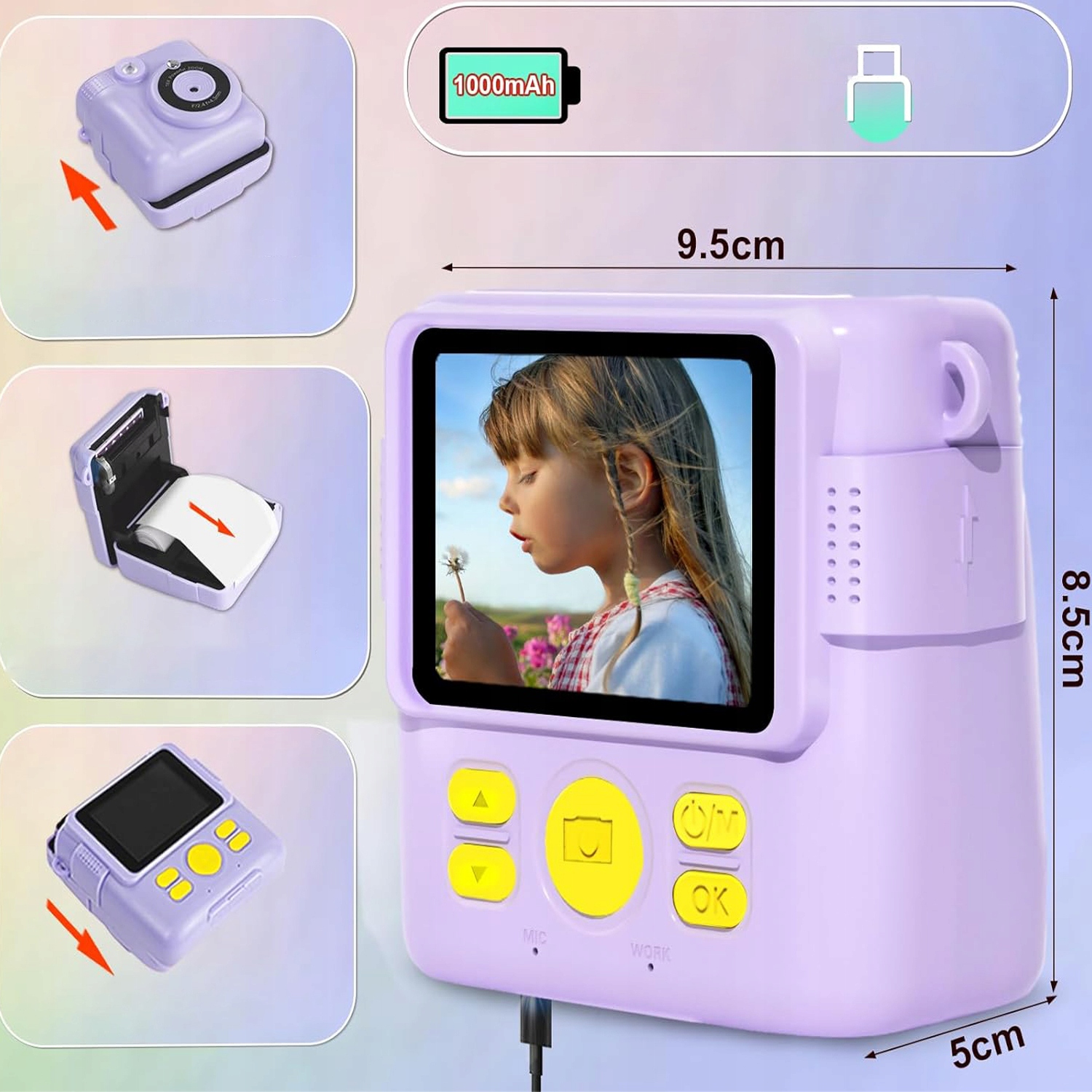 📷 【Камера для миттєвого друку для дітей】: завдяки технології термодруку діти можуть легко друкувати без тонера. Просто виберіть режим фото і натисніть кнопку «Зйомка», і з’явиться чорно-біле зображення. Давайте робити веселі фотографії з родиною та друзями за допомогою розумного спалаху, автоматичної експозиції для нічних фотографій, гарної видимості та чудових ефектів.