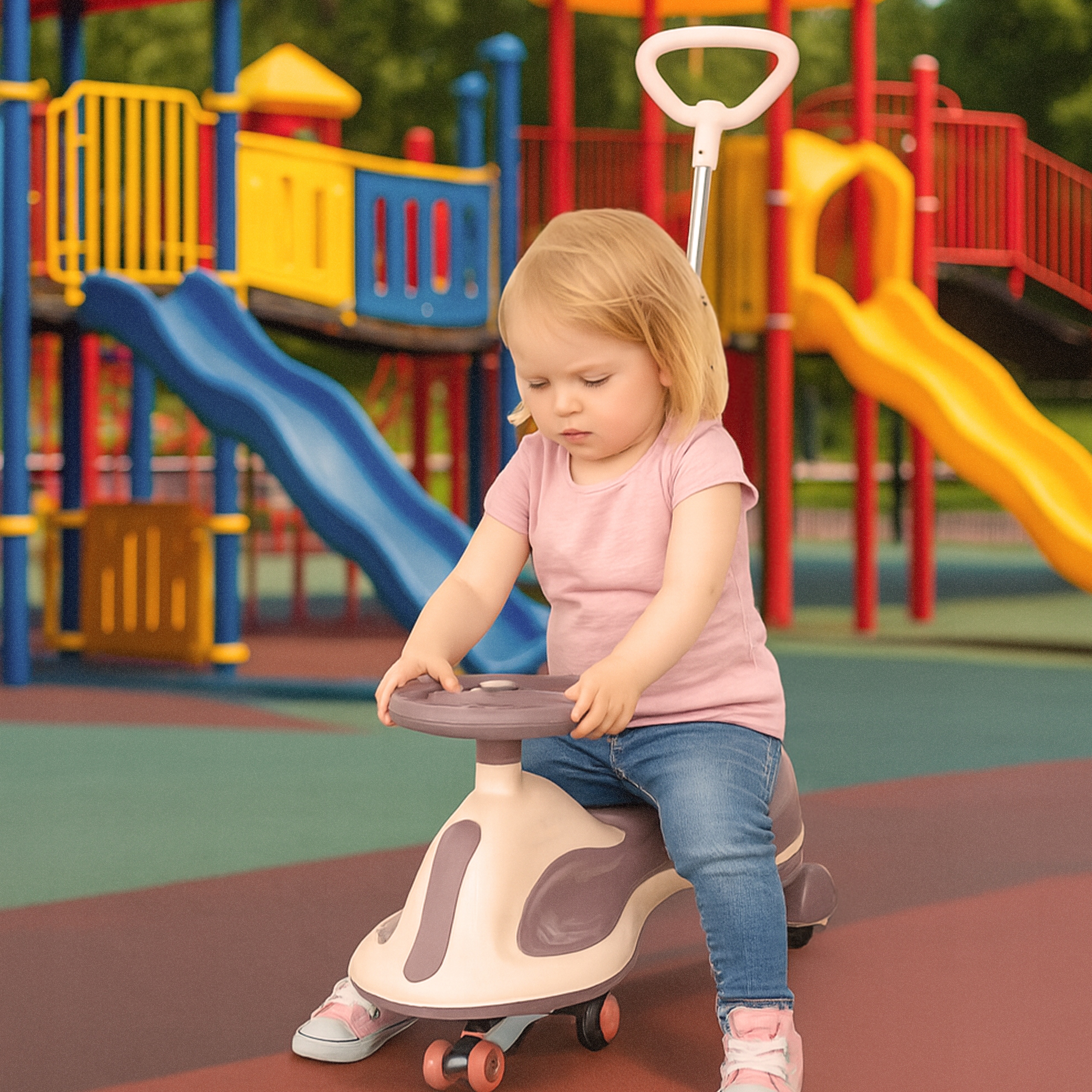 Gravity rideon – це інноваційна іграшка, що працює від руху тіла, що забезпечує динамічну їзду без педалей. Стійка конструкція та низьке сидіння гарантують безпеку, а світлодіодні колеса забезпечують видимість та задоволення під час водіння. Протиковзкі колеса дозволяють плавно пересуватися по різних поверхнях. Функція програвання ще більше урізноманітнює веселощі, додаючи бадьорі звуки під час водіння. На ньому є ремінь безпеки для кріплення, що підвищує стабільність і комфорт під час використання. Ідеально підходить для дому, саду та прогулянки.