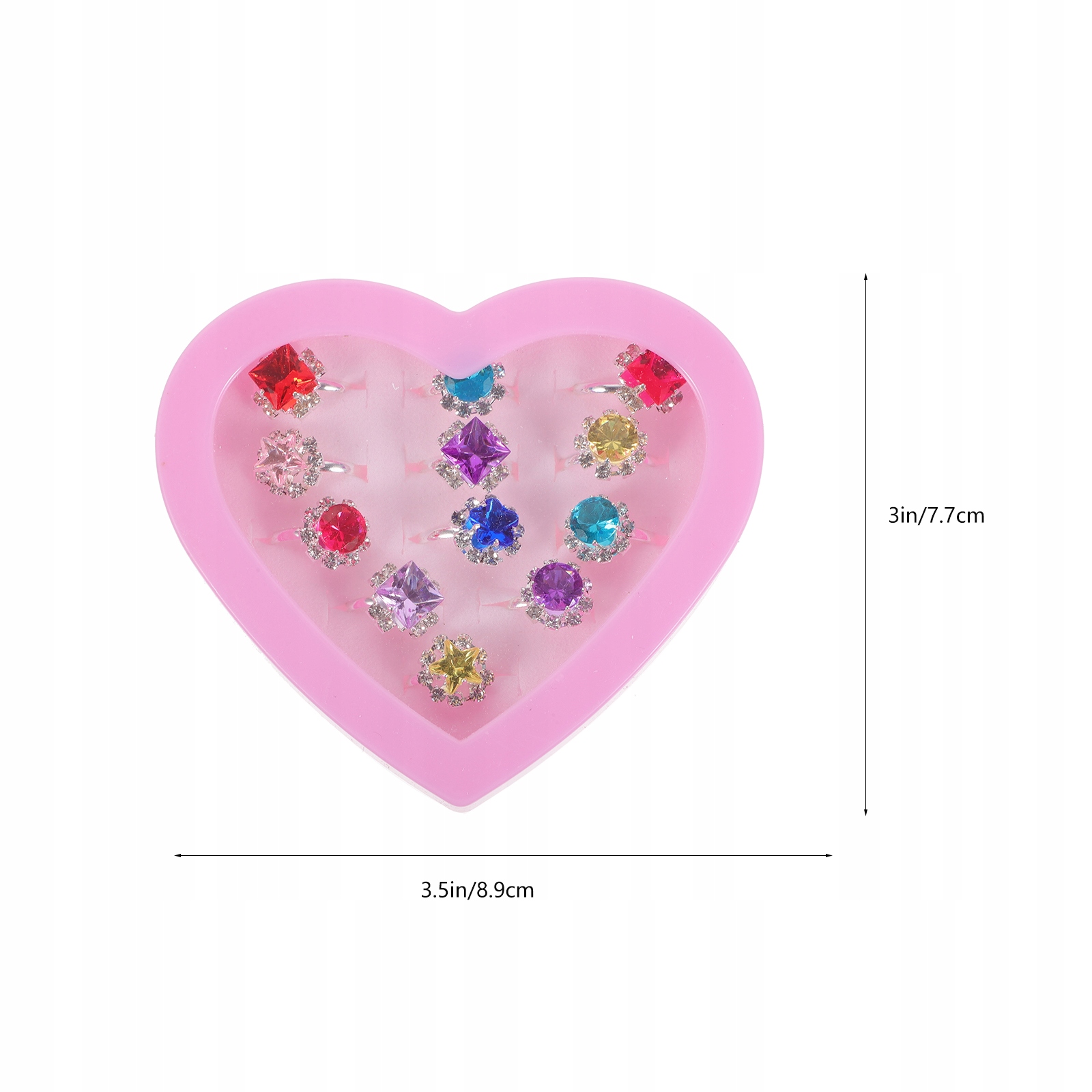 ДИТЯЧА КІЛЬЦЕ КРАСИВИЙ КОЛЬОРОВИЙ НАБІР КІЛЕЦЬ З ДІАМАНТАМИ В ПОДАРУНОК З КОРОБКОЮ У ФОРМІ СЕРЦЯ ДІВЧИНКІ 12 ШТ.