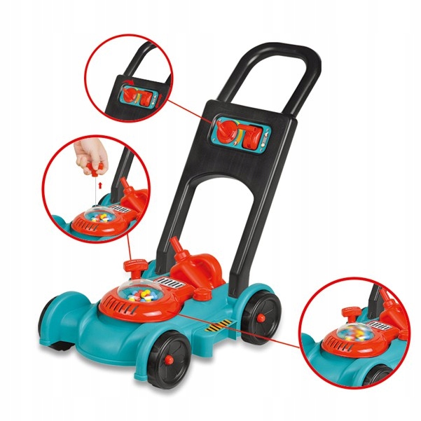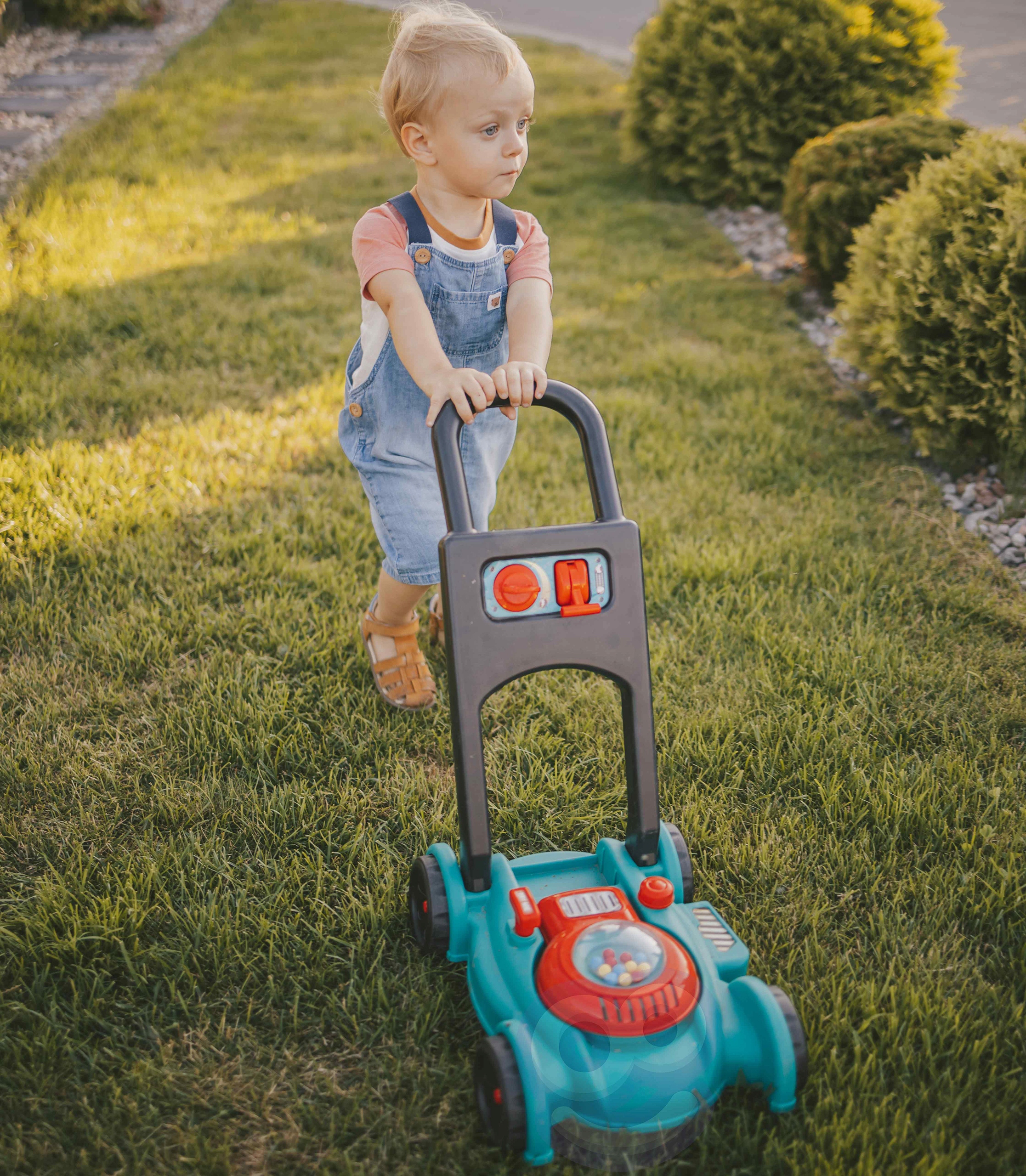 Успішна гра на свіжому повітрі може бути ще цікавішою та привабливішою завдяки іграшковій газонокосарці. Іграшка не тільки навчить дитину доглядати за газоном, а й підніме настрій малечі та викличе щиру посмішку завдяки різнокольоровимкулькам, які грають весело граються під час їзди. Косарка має колеса, які з легкістю подолають заданий дитиною маршрут. Ідеальний набір для наслідування своїх батьків!