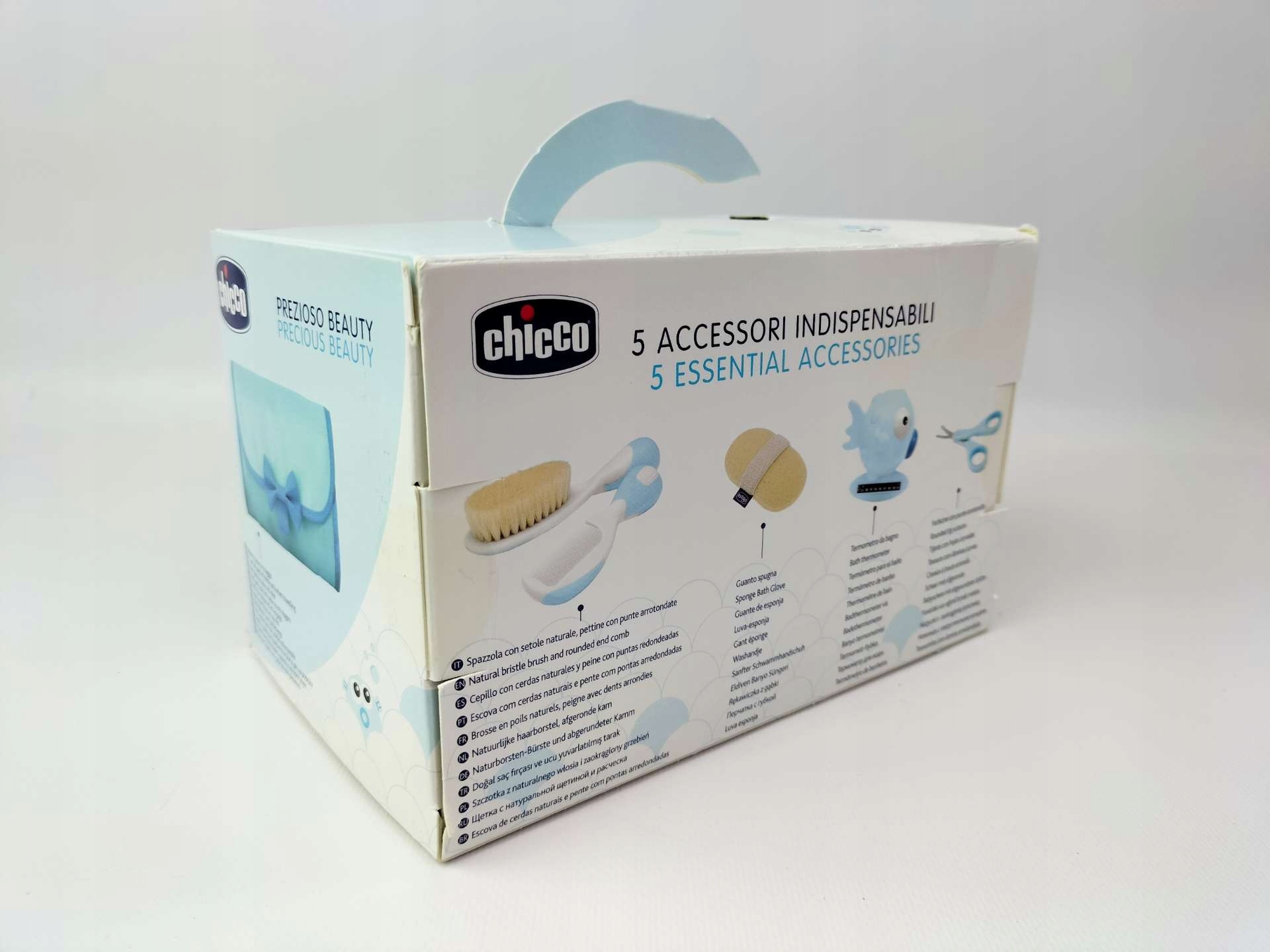 Ексклюзивна програма розваг для малюків. 1 гребінець, 1 щітка, 1 дитячі ножиці, 1 шампунь для ванни, 1 натуральна губка в практичній косметичці, яку можна повісити у ванній. Знімна внутрішня кишеня, також ідеально підходить як подарунок.