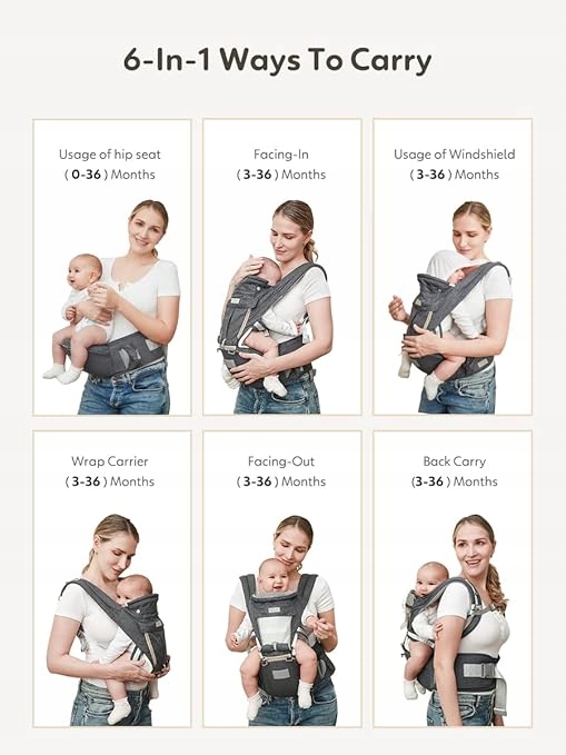 - ПІДХОДИТЬ ВІД НОВОНАРОДЖЕНОГО ДО НЕмовляти - Є 3 комбінації та 6 способів перенесення вашої дитини, знімне сидіння на стегнах можна використовувати окремо, батьки можуть використовувати його різними способами відповідно до росту та потреб дитини. li>< /ul>