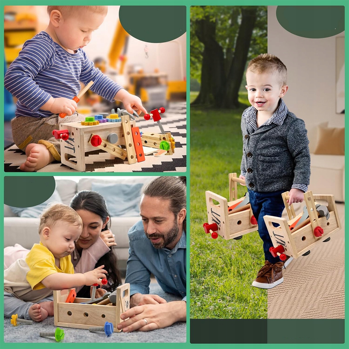 Діти цікавляться новими речами й люблять мамині й татові ящики для інструментів. Якщо бабусі та дідусі чи батьки хочуть подарувати вашій дитині чудовий подарунок, наш дерев’яний дитячий набір інструментів стане чудовим подарунком для дітей віком від 3 років і ідеально підходить для днів народжень, Хелловіна, Різдва, Дня подяки, Нового року, Дня захисту дітей та інших свят.