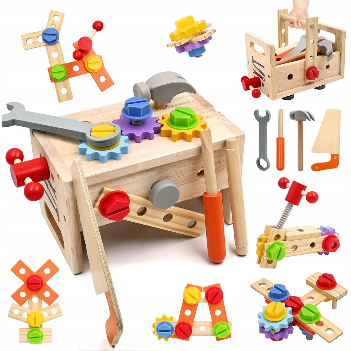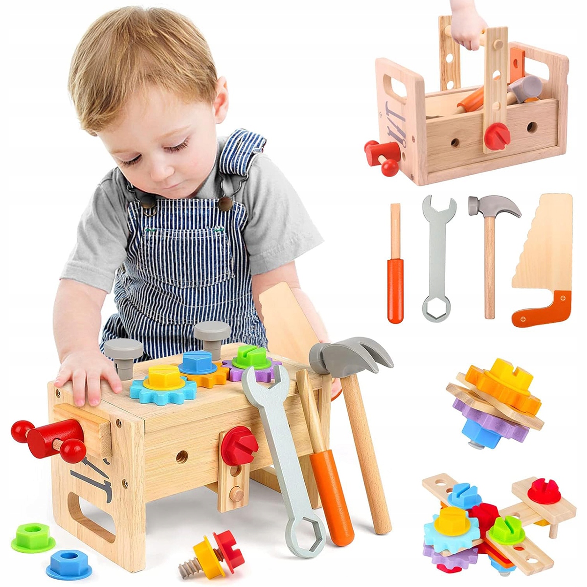 ⭕Ящик для інструментів для дітей від 3 років, Монтессорі, дерев'яна іграшка для дітей, інструменти, верстак, розвиваючі ігри, набір інструментів, гвинт, молоток, гра, ігри, подарунки для хлопчиків і дівчаток від 3 років