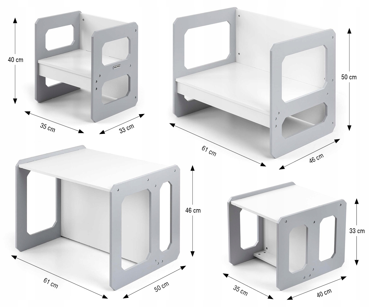 Меблі виготовлені з винятковою точністю та ретельністю . Обидва елементи набору Stella мають геометричну конструкцію, всі краї, закріплені для захисту дитини від травм. Вся структура набору та стільців таблиці забезпечує високу стабільність і мінімізує ризик падіння. набір меблів Stella виготовлений з MDF міцний і простий у догляді. Набір меблів простий для складання, і всі елементи, необхідні для складання, були включені до набору. Він поставляється в кольорах: сірий, природний.