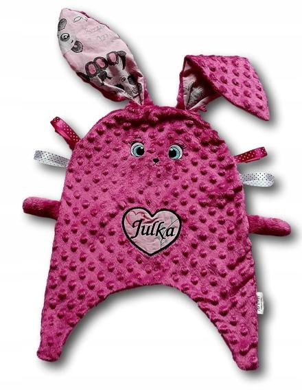 Дитяча м'яка іграшка, ковдра, іменний ярлик, кролик-зайчик, з іменною тканиною