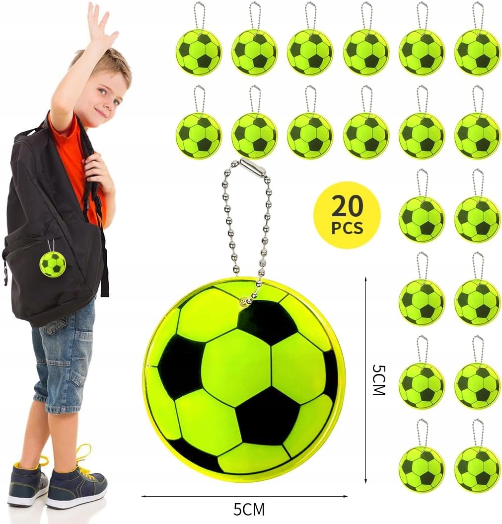 Рефлектори виготовлені з твердого ПВХ, який є водонепроникним, міцним і його легко носити. Футбольний мотив одночасно модний і функціональний, а підвіски працюватимуть за будь-яких погодних умов.