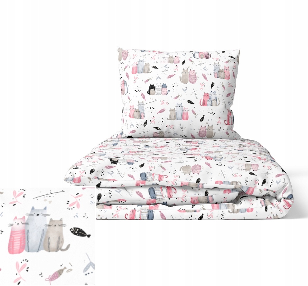 Дитяча постільна білизна 140x200 см для дитини, візерунок: Сімейні коти рожеві