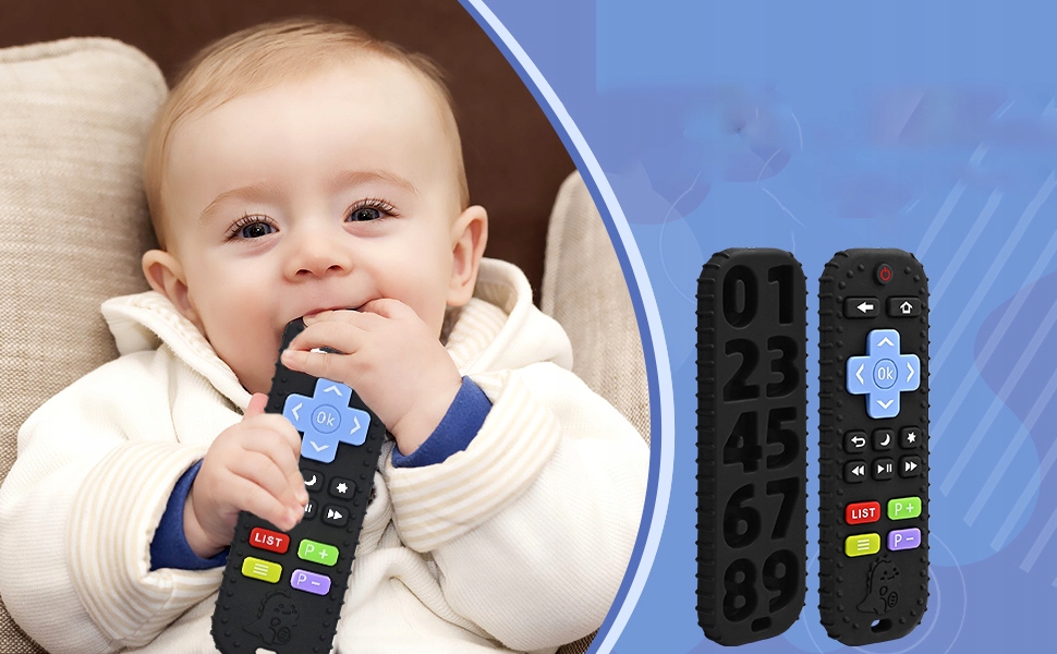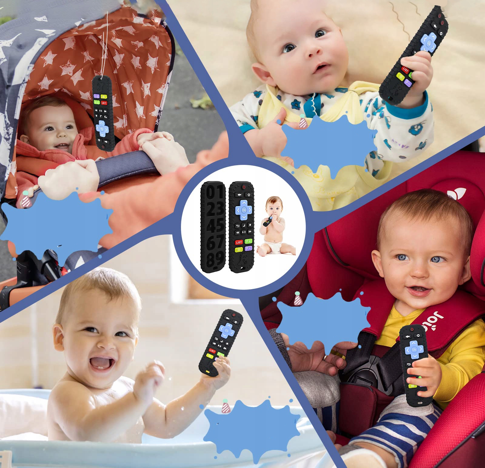 Ідеальна іграшка для прорізування зубів для немовлят віком від 3 до 6 місяців: дозвольте своїм дитина впивається зубами у щось веселе та безпечне. Наші прорізувачі для малюків 3-6-12 місяців виглядають як справжні пульти, мають насичені кольори та реалістичні візерунки кнопок. Вони чудово заспокоюють біль у яснах, підтримують координацію очей і рук і роблять вашу дитину щасливою та зайнятою протягом багатьох годин.