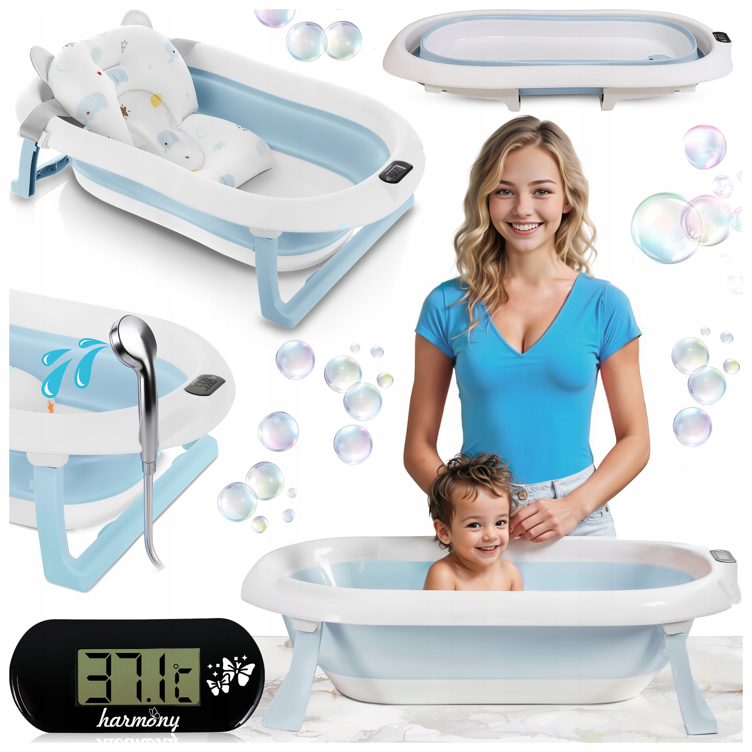 ДИТЯЧА РОЗКЛАДНА ВАННОЧКА З ТЕРМОМЕТРОМ ВЕЛИКА ДЛЯ ДИТИНИ СИНЯ