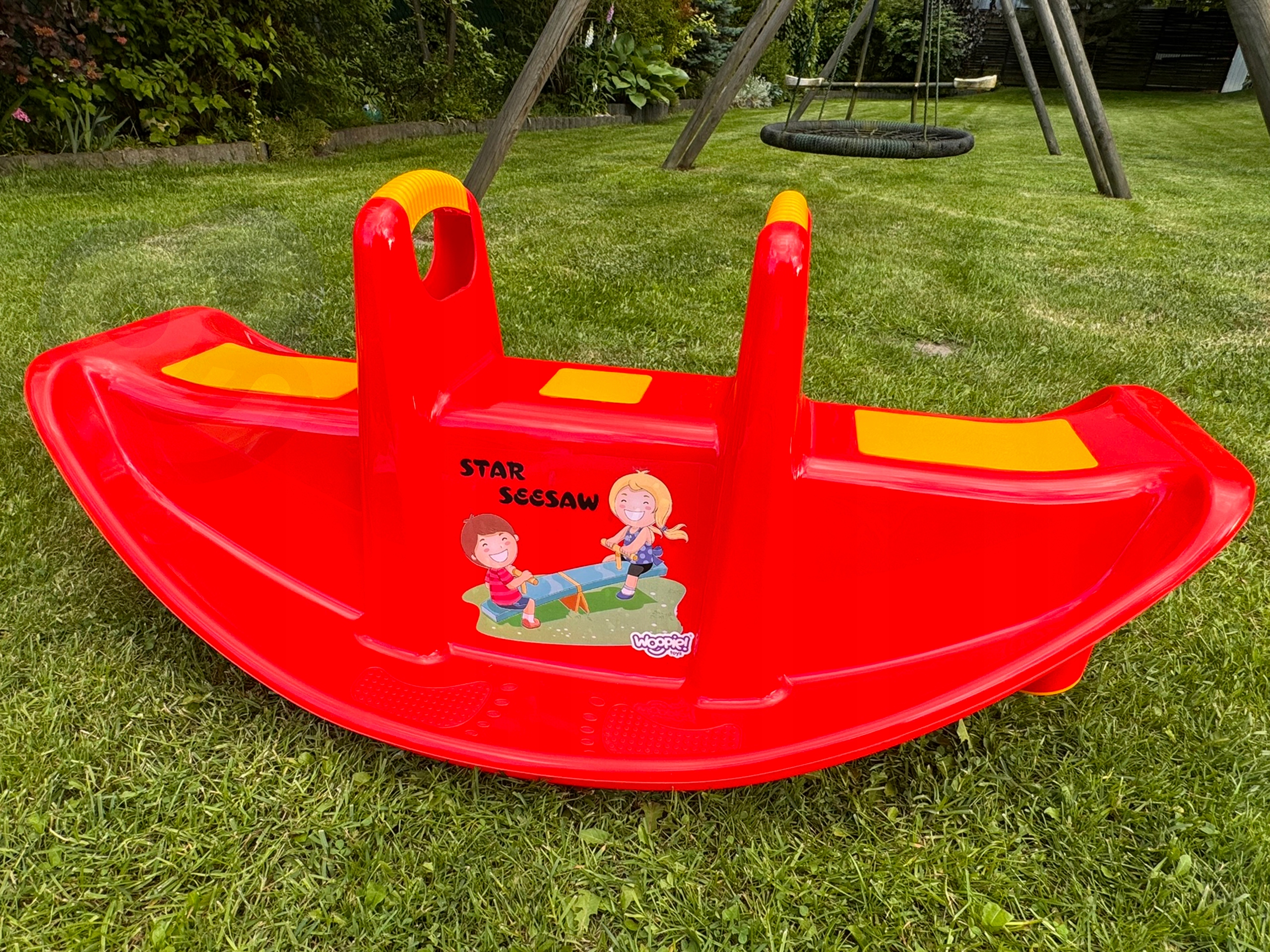 Multi-Personal Rocker STAR Red від Woopie - справжня зірка серед дітей! Одночасно качалкою можуть користуватися максимум троє дітей, і навіть один отримає задоволення. Коли діти гойдаються разом, це також розвиває їхню здатність до співпраці. Гойдалка має спеціальні протиковзкі накладки на сидінні та захист ручок. Сама качалка забезпечує багато переваг для дітей. Саме погойдування заспокоює малюка і розвиває моторику тіла, що ідеально підходить для правильного розвитку. Гойдалку можна використовувати як у приміщенні, так і на вулиці!