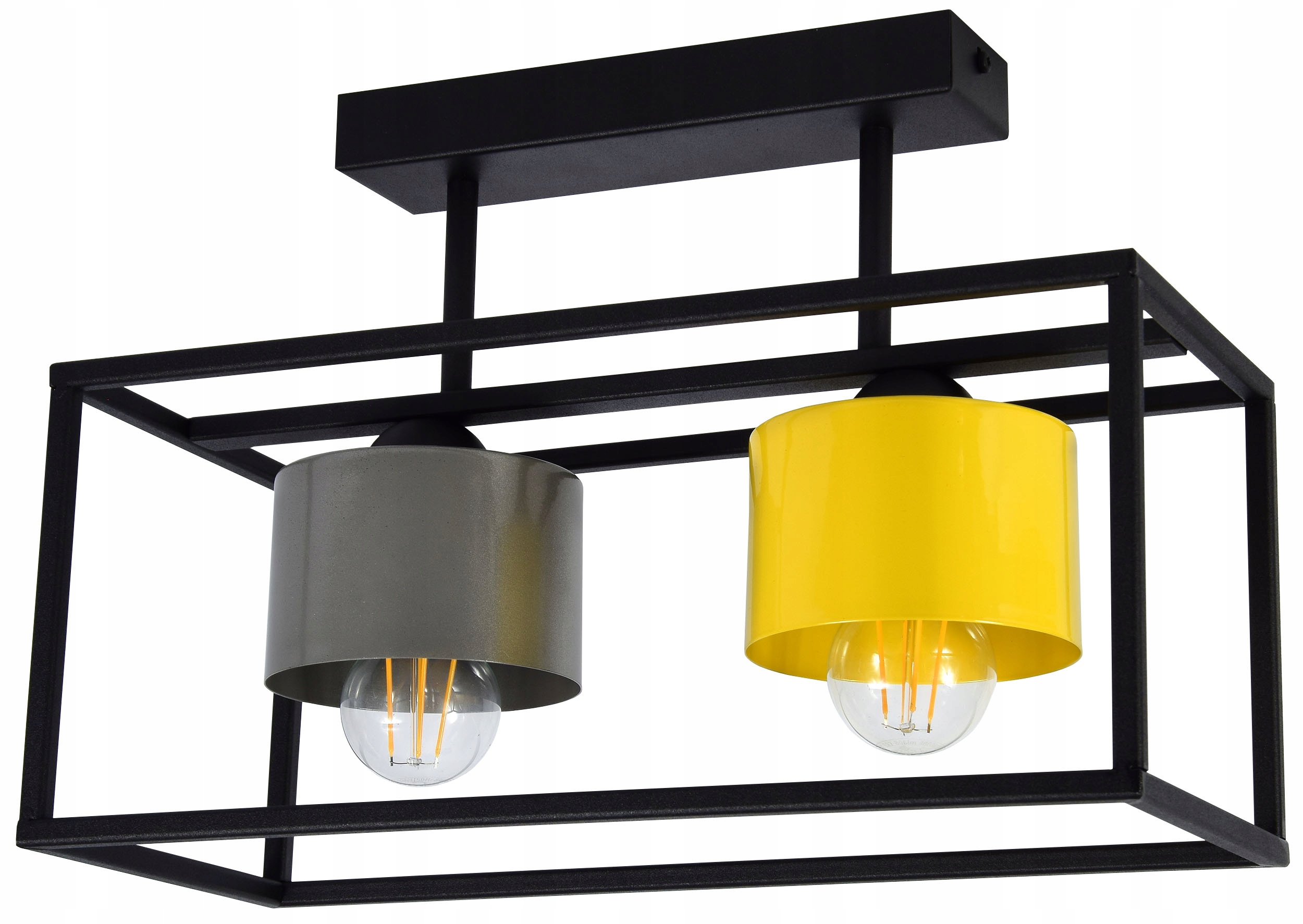 Сучасний підвісний світильник у формі металевої клітки з двома світловими точками.