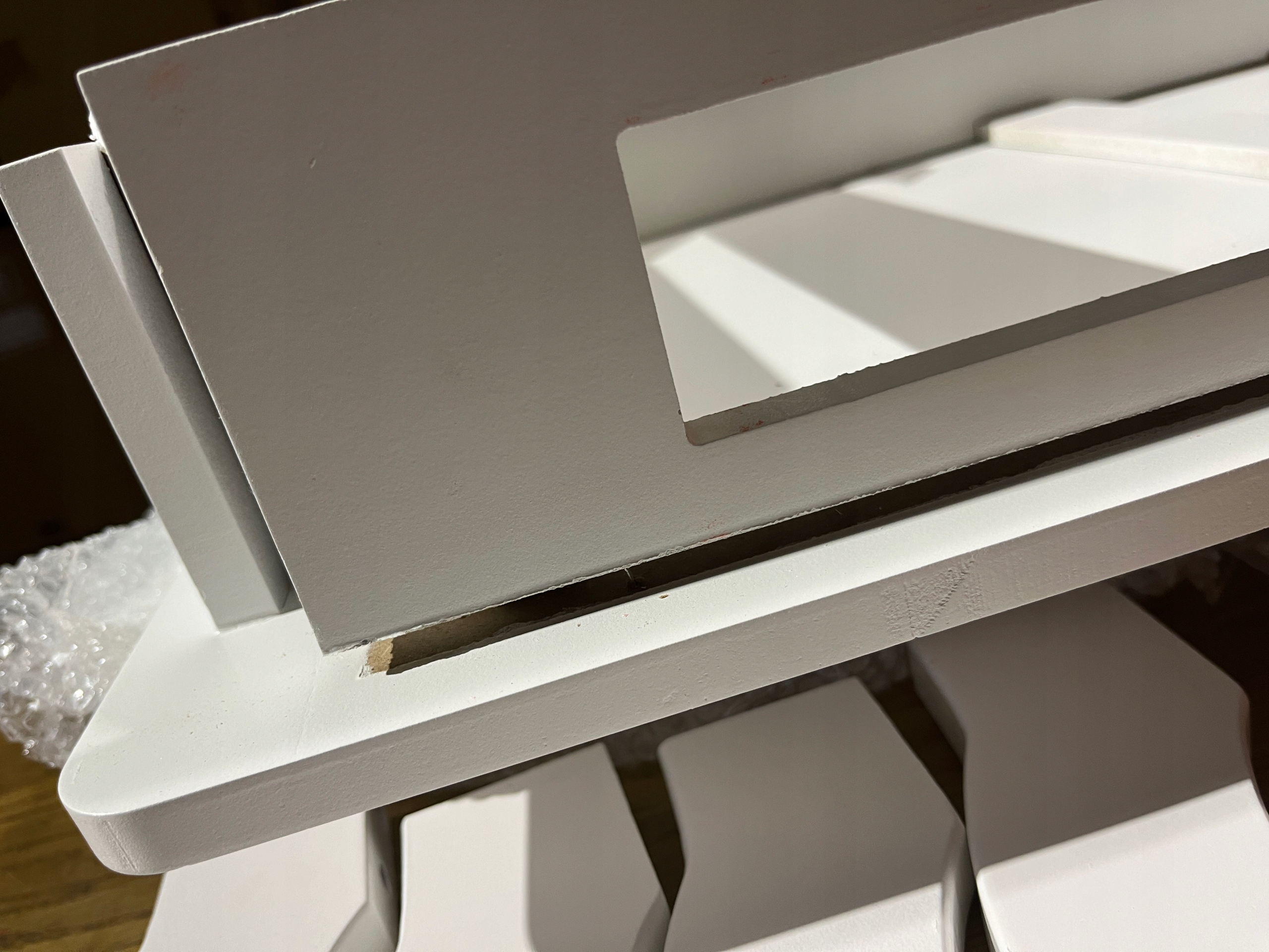 - Примітка: У туалетний столик має пошкодження, під час транспортування стільниця з ящиком була розбита, пошкодження не є суттєво впливає на використання. Для ремонту/склеювання самостійно. Справжні фотографії внизу аукціону. The offered product is new , comes from a return or unsuccessful package, has been unpacked by us to check, it has a worn packaging