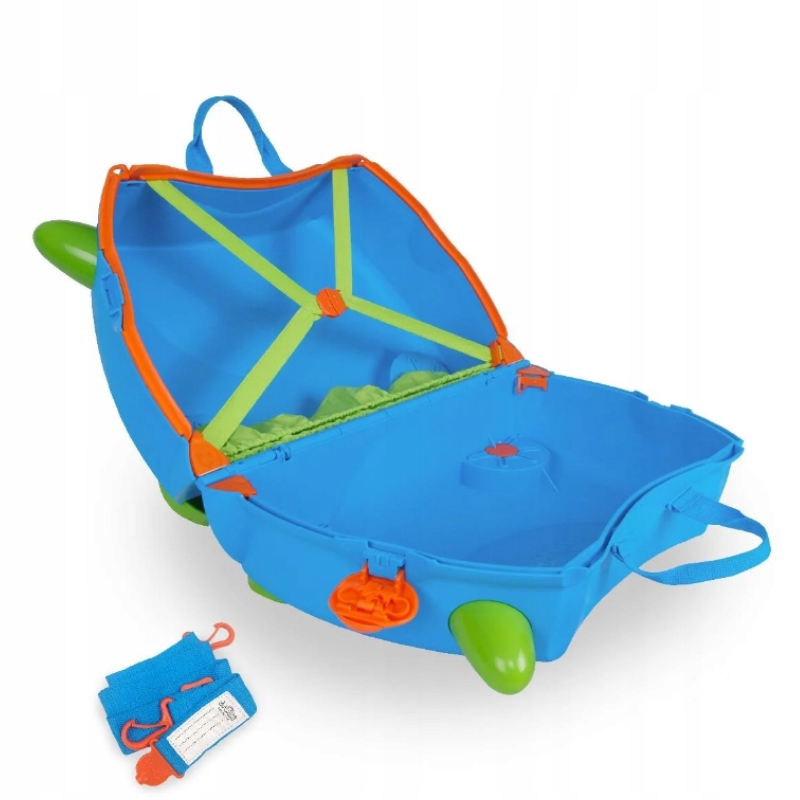 Trunki — це функціональна, безпечнаваліза, на якій можуть кататися діти. Ідеальний для подарунка, подорожі та свята. Завдяки Trunki діти можуть самі зібрати речі, навчаючись відповідальності, і зробити свою подорож цікавішою, сидячи або катаючись на валізі. Він легкий, міцний, вміщує 18 літрів і відповідає стандартам ручної поклажі. Має зручне сидіння, надійну застібку, м'яку гумову обшивку, внутрішні кишені та ремені безпеки. Trunki робитькожну подорож пригодою.