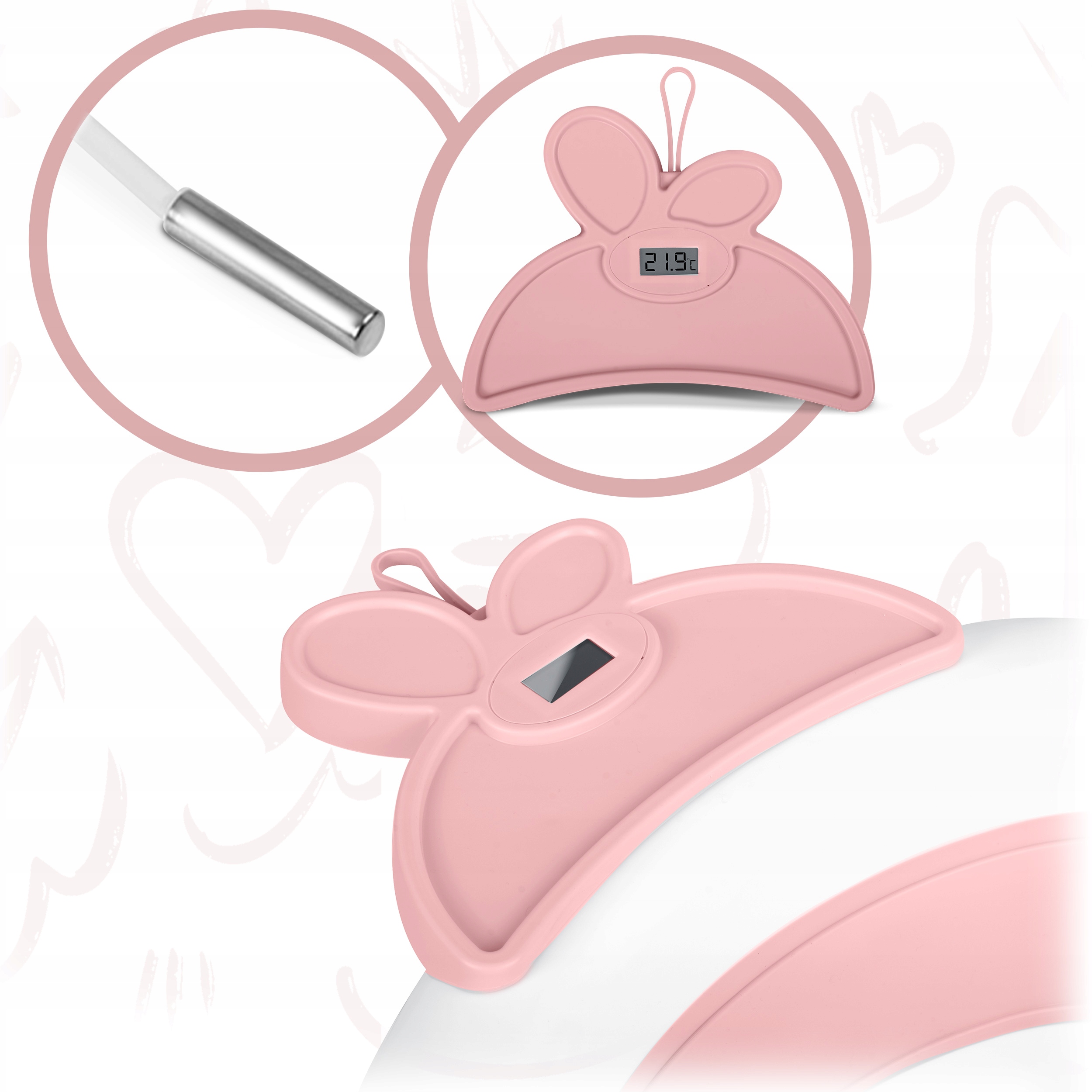 Біло-рожева дитяча ванночка з термометром