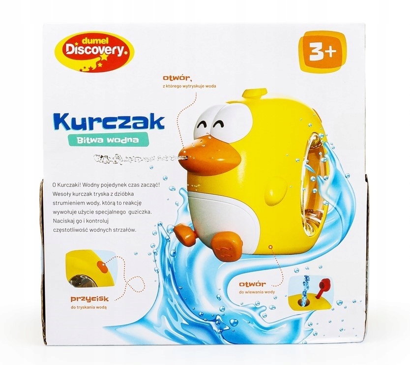 Настав час водного бою! Веселе курча оснащене резервуаром і кнопкою для викиду води. Просто помістіть батарейки в іграшку (не входить в комплект), наповніть резервуар водою і все! Курка готова до гри.
