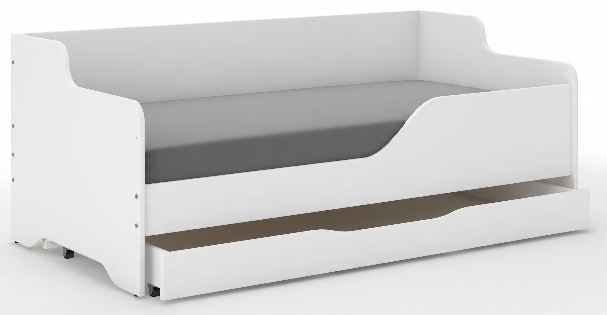 - Бічні частини ліжка покриті ПВХ шпоном, який ефективно захищає від пошкоджень.