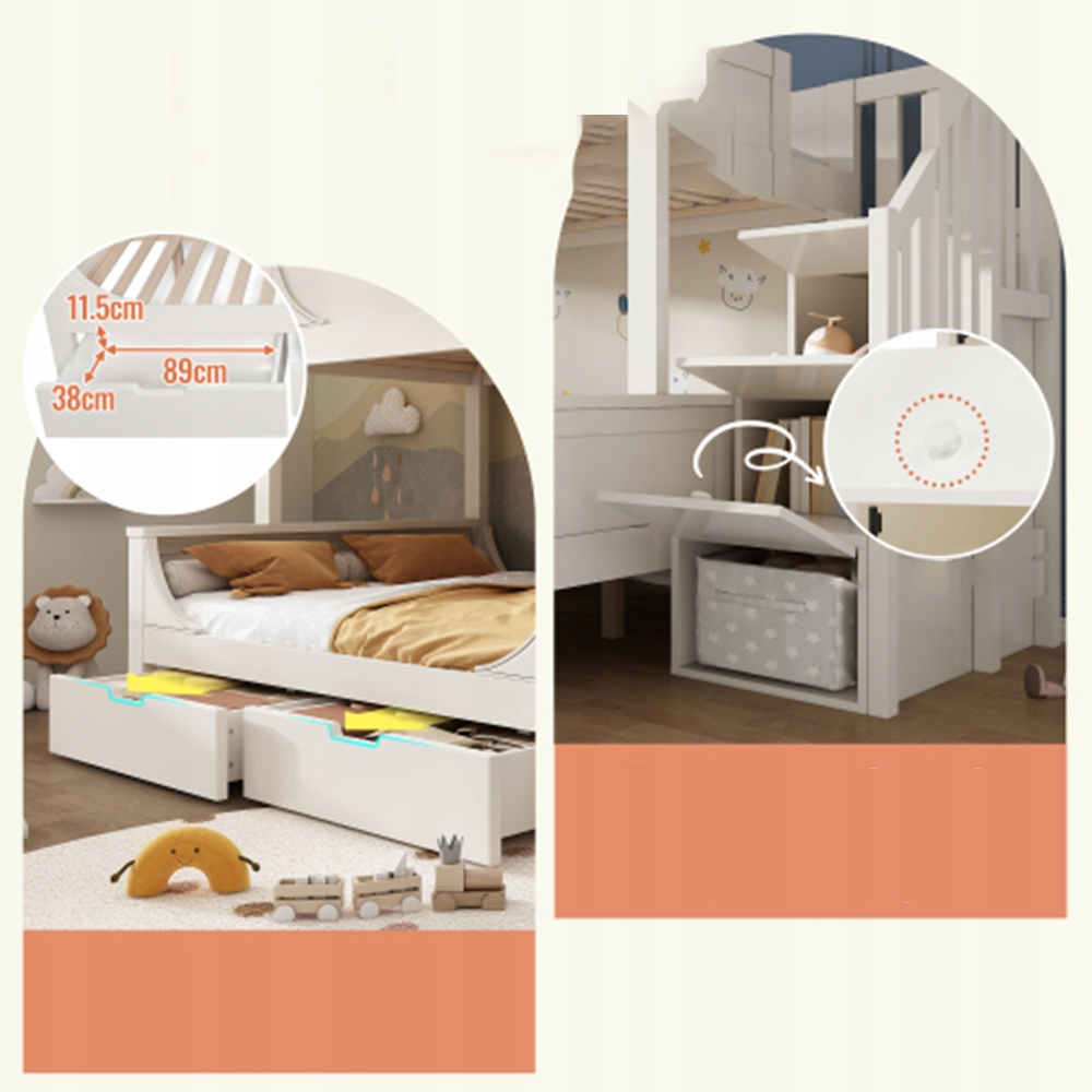 Стіл під ліжком - функція 2 в 1: Під верхню частину ліжка вбудована стільниця, що дозволяє дитині комфортно читати або робити уроки, не займаючи додаткового місця. Це практичне рішення для дитячої або підліткової кімнати. 📏🖍 📘
