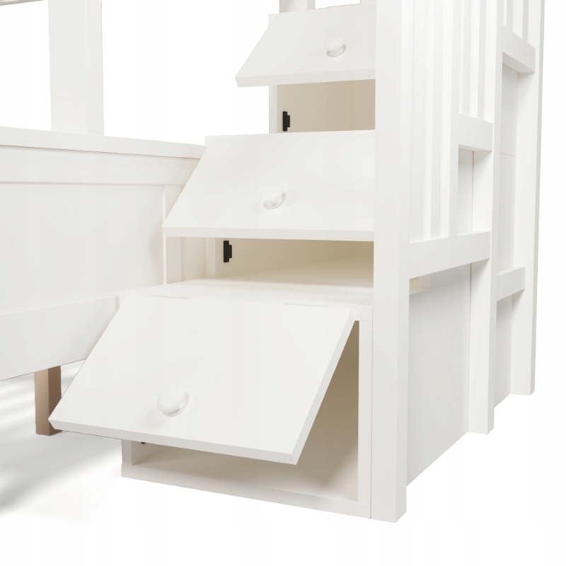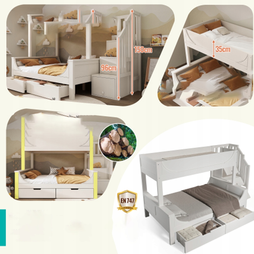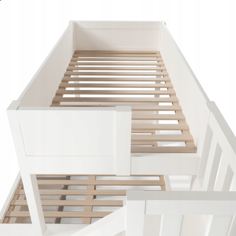 Підбірний розмір і стильний вигляд: верхнє ліжко має розміри 90×200 см, нижнє – 140×200 см – ідеально підходить для братів і сестер або батьків. Виконано в класичному білому кольорі з елементами природи і вписується в скандинавський або сучасний дизайн інтер’єру. 🌼✨🖼