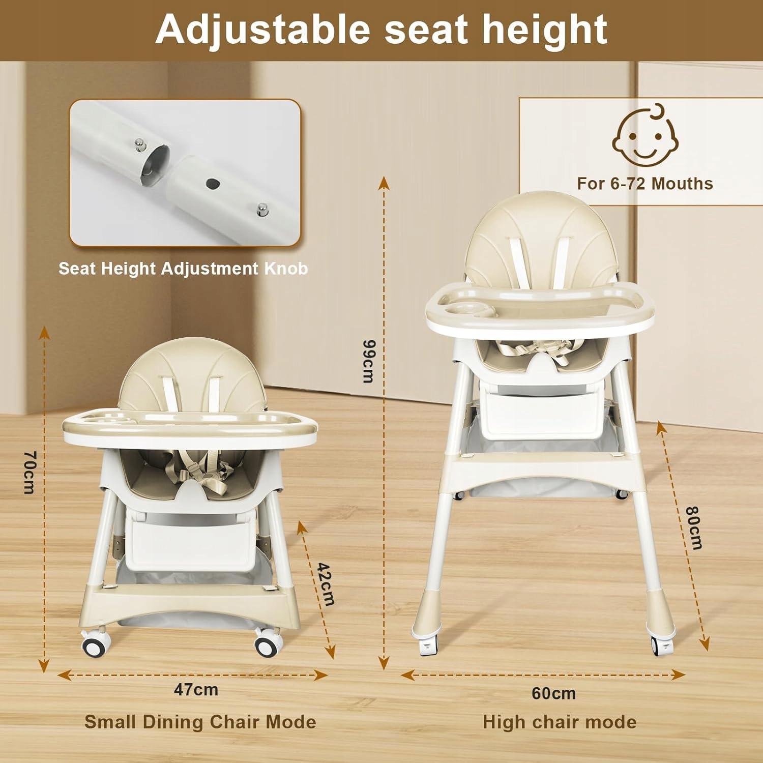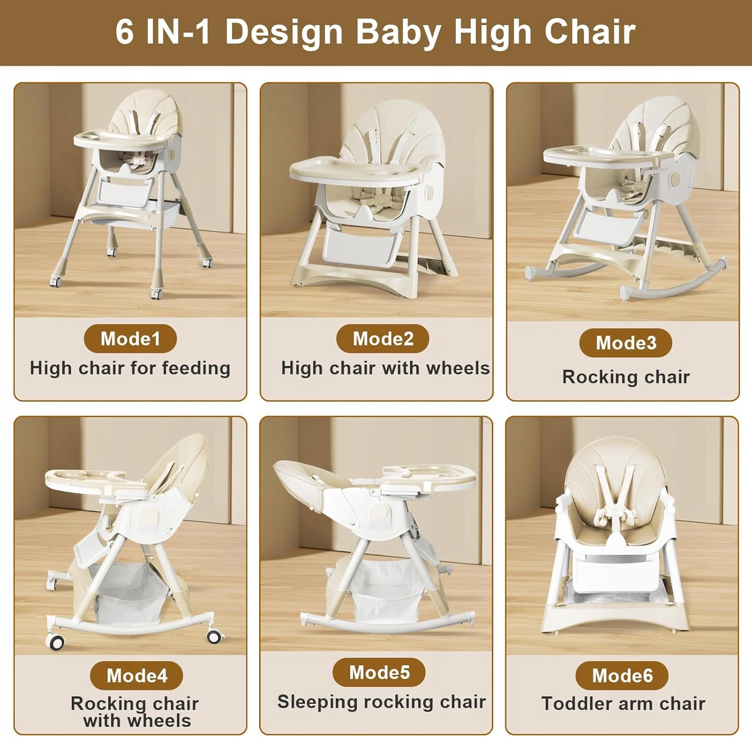 Крісло 6 в 1 - багатофункціональне дитяче крісло, яке росте разом з дитиною. Завдяки 6 режимам його можна використовувати як високий і низький стільчик для годування, качалку, коляску або крісло.